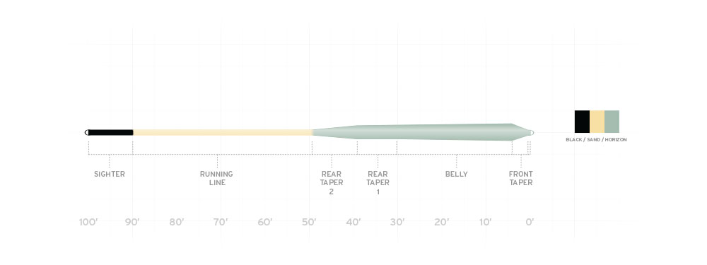 - High-contrast sighter to identify the back of the line when fighting fish on long runs