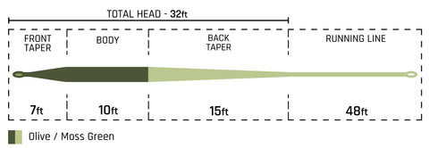 The Headwater was designed for accurate, subtle presentations on small streams and spring creeks. Built true to line weight, a short body and front taper design helps load rods up close. This line features a supple braid core that remains memory free when stored on small arbor reels. A mute olive colored head eliminates line flash and allows for a stealthy approach in gin clear water.