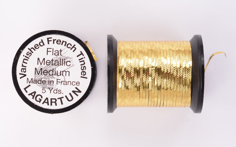 Embossed tinsel is a metal tinsel that has a design pressed into it. Satin Embosssed is a spotted design, Semi Embossed is a satin design in segments, and Plisse Embossed is a barred or line design.