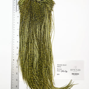 Grizzly dyed Olive - Whiting Line Rooster Saddle - Bronze Grade