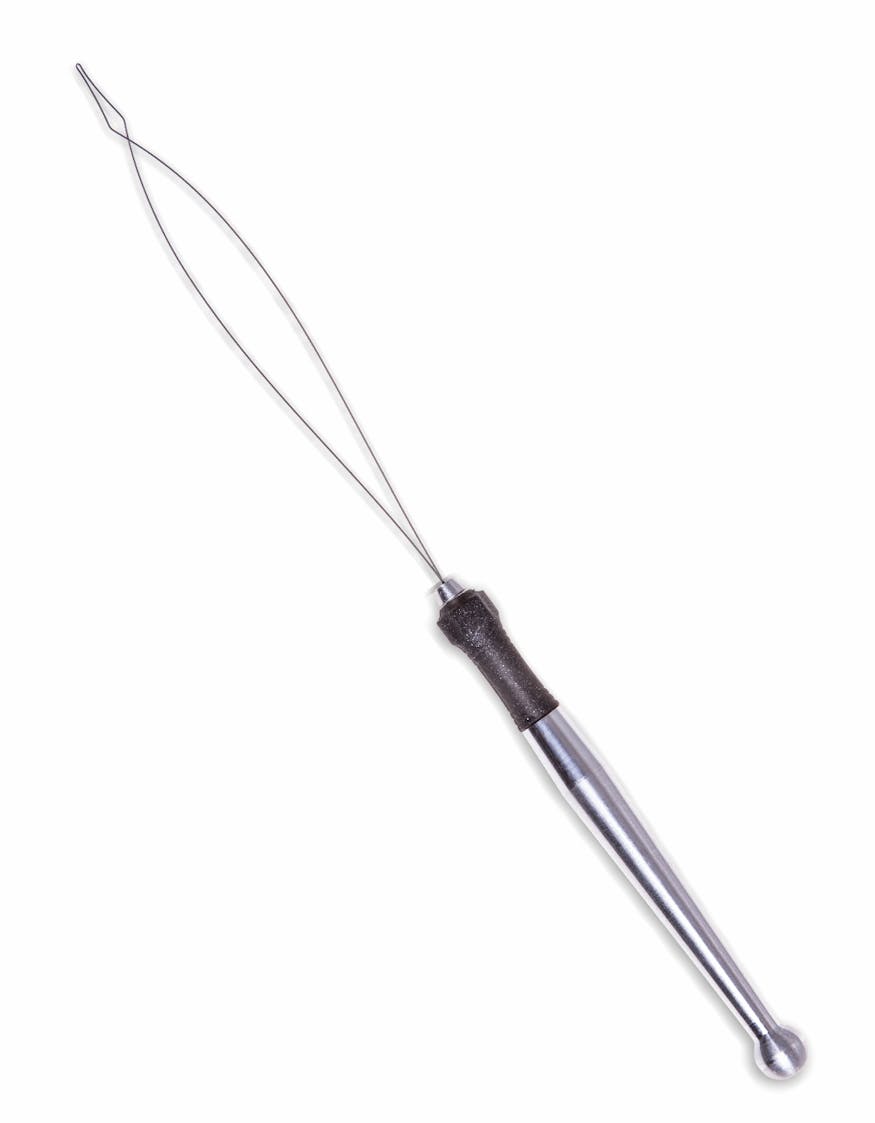 Useful tool to thread the bobbin holder. The soft touch handle has a special hexagonal shape so that the tool won’t roll off the tying table. Instructions included.