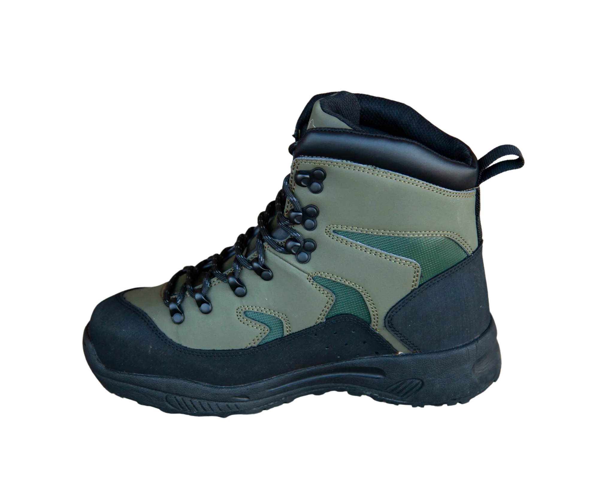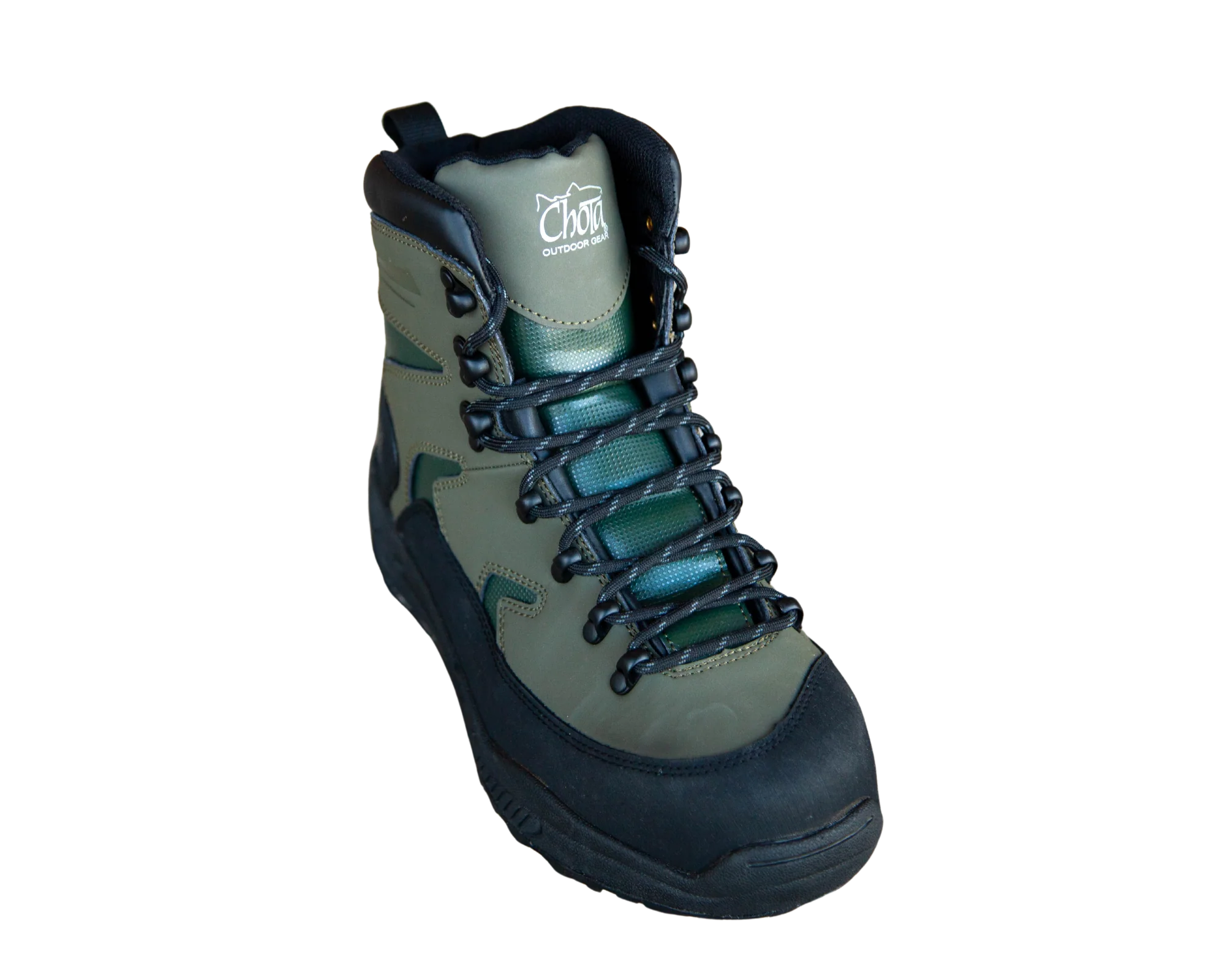 The Rough Ridge is designed for the harshest conditions The upper is a lightweight Rubber coated PU coupled with a hard rubber toe and heel rand make the rough ridge an incredibly durable boot that can take a beating. The synthetic inner lining and 3mm insole provides for a comfortable fit and does not soak up water helping to keep the boots light. Our EVA mid-sole provides all day comfort and durability for those long days on the water. This model Rough Ridge boot feature a high traction rubber soles that accepts all styles of our Chota cleats.