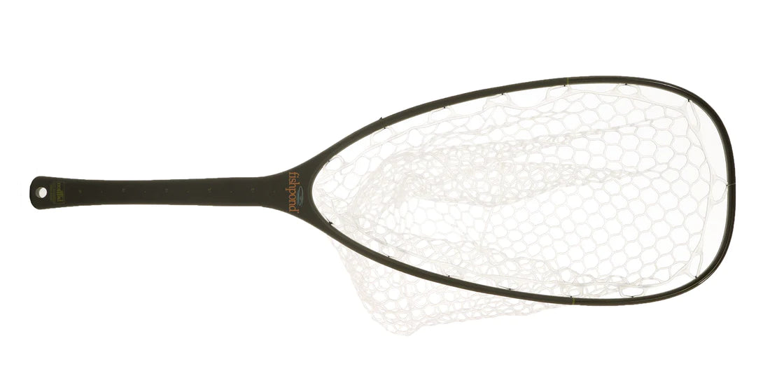 Nomad Nets are constructed with carbon fiber/fiberglass composite material. The result is a very lightweight and durable net. Nomad Nets are built for the conditions that prevail where great fishing exists; they are waterproof, UV protected, and float like a cork. The Nomad Emerger net was designed to work with both packs and vests. The longer handle can easily tuck behind a pack but is not too long to hang off the back of a vest.