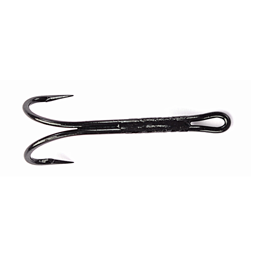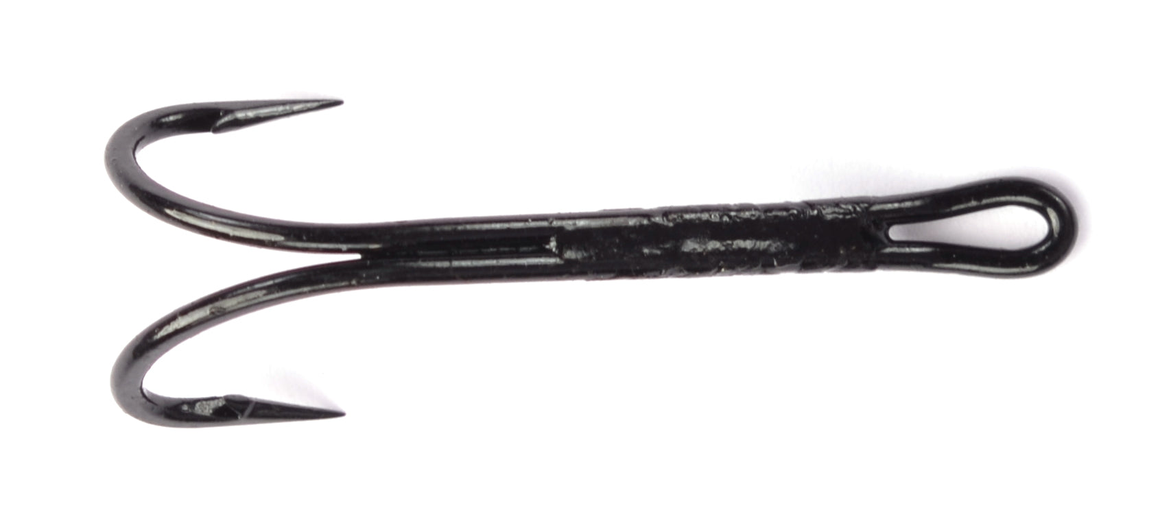 Two hooks in one lure is an old trick to successfully catch more fish! This double hook is produced from one piece of wire doubled back in the shank of the hook where it is brazed together. The wire diameter and shape of this hook connotes a low water style of salmon hook. This is a traditional hook for salmon, though some salmon fisheries now restrict the use of double hooks. As a fishing tool, double hooks have twice the weight of a similar sized single hook and the two hooks bends at 90 degrees from each other are said to be effective keels for some flies, keeping them upright.