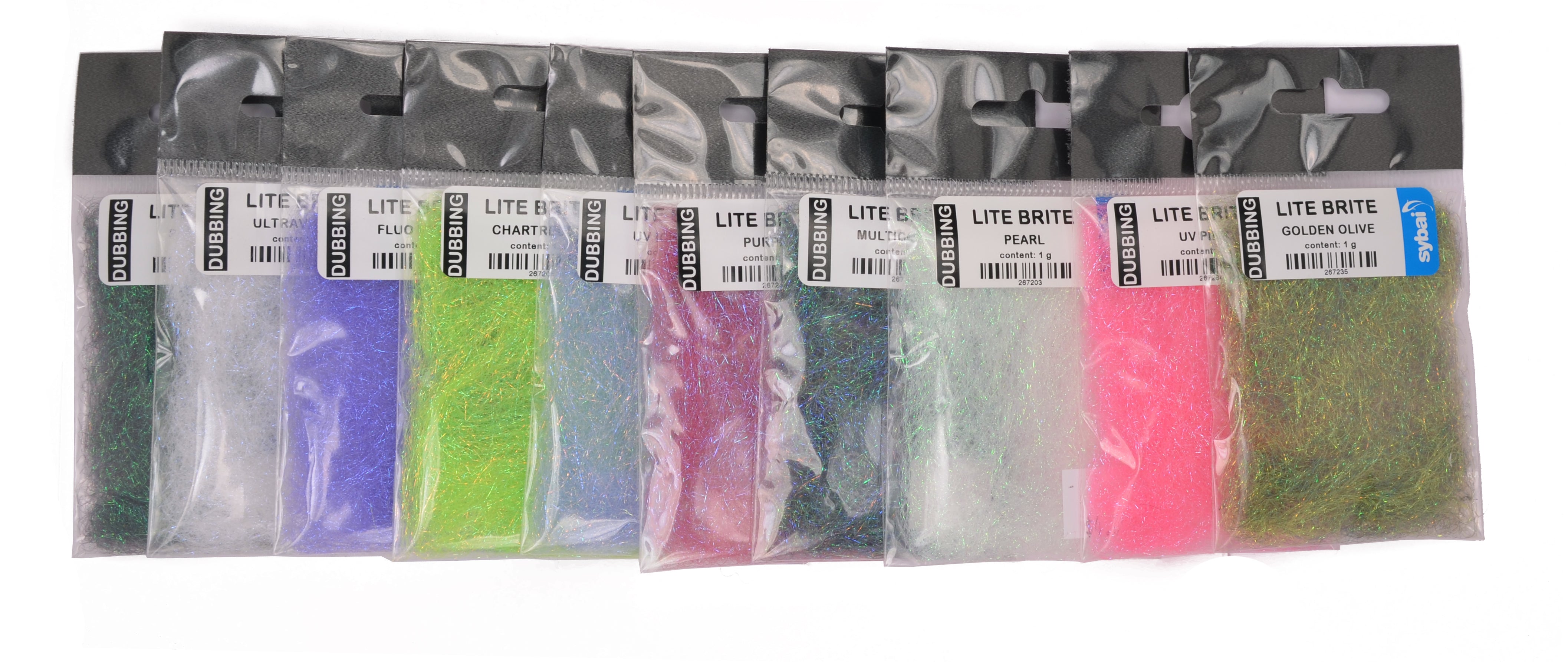 Flashabou textured synthetic dubbing. Can be mixed with other dubbing materials. Perfect for speedy formation of shiny saltwater, streamer, and wet flies bodies.