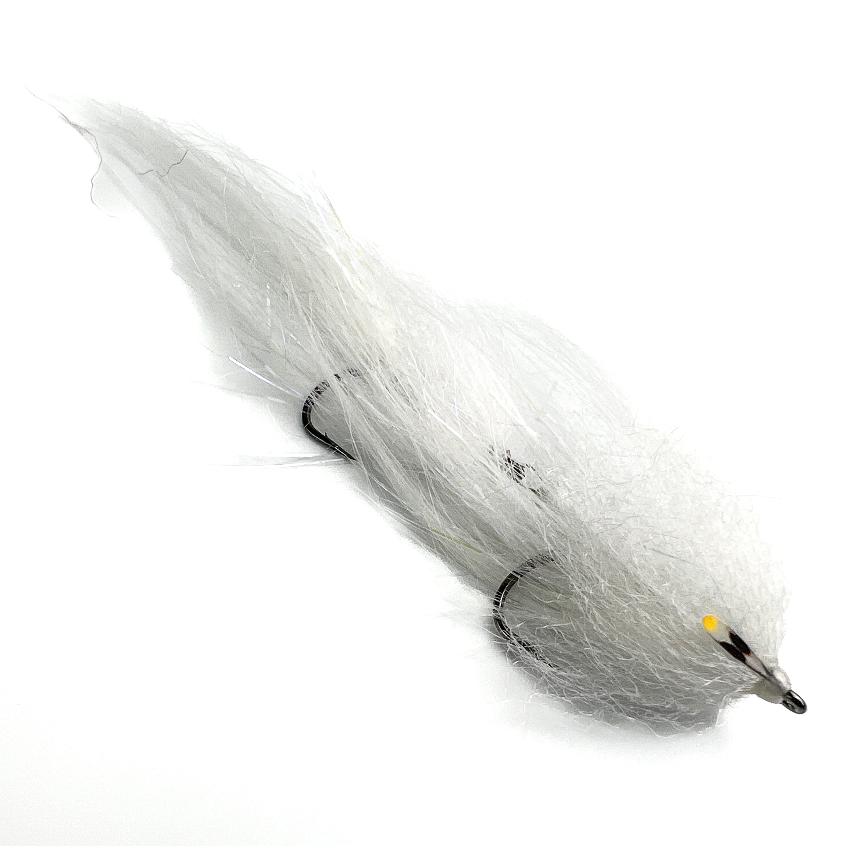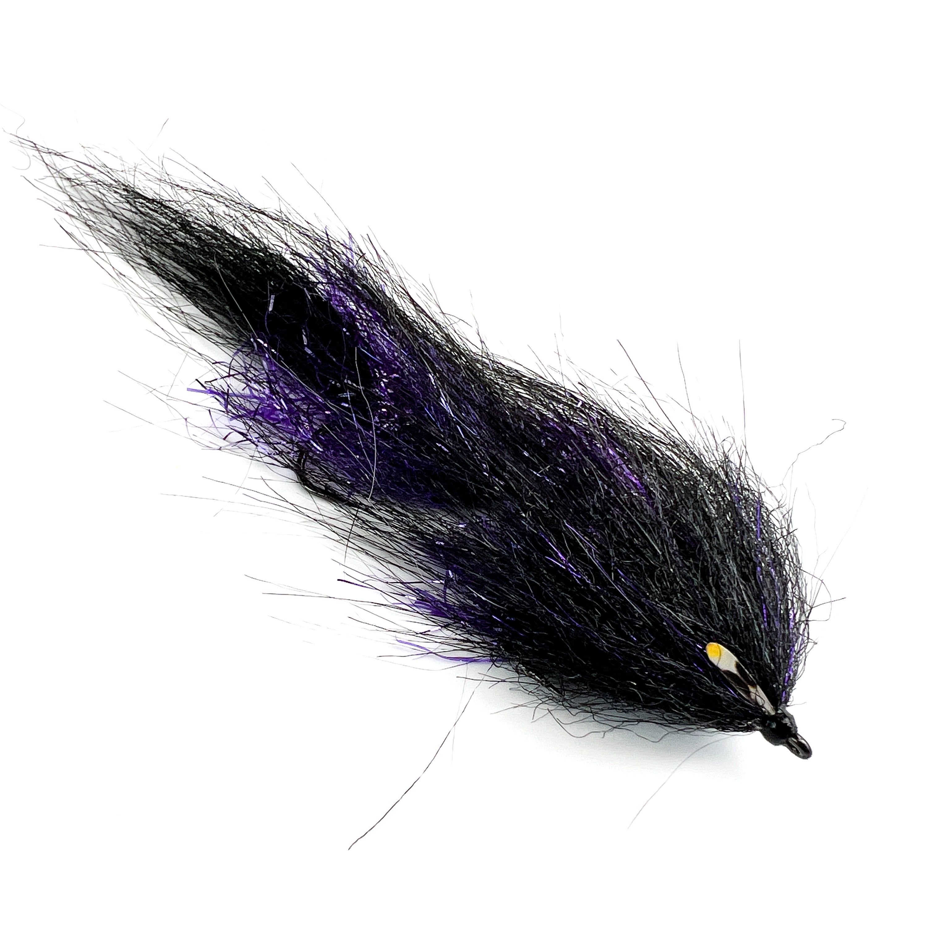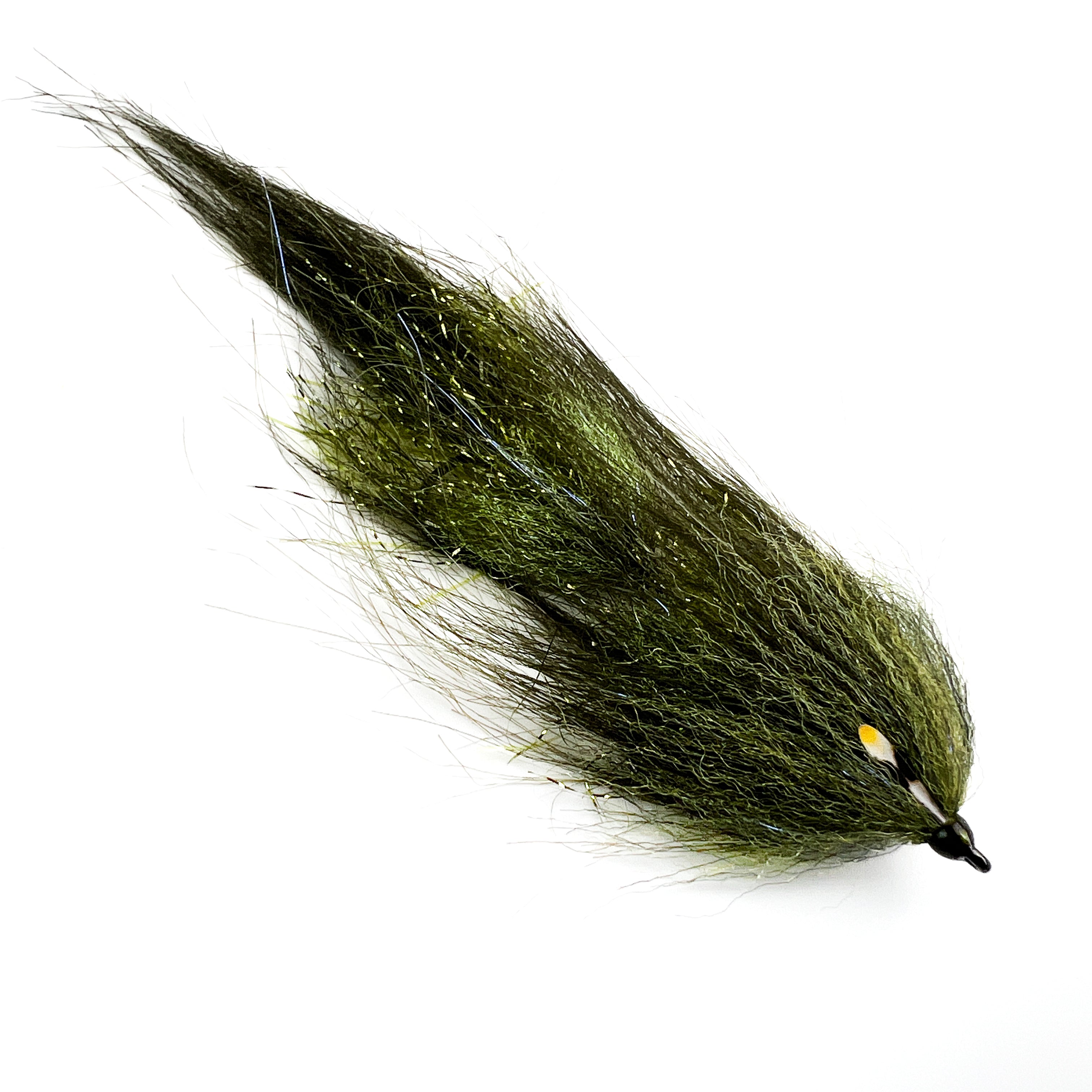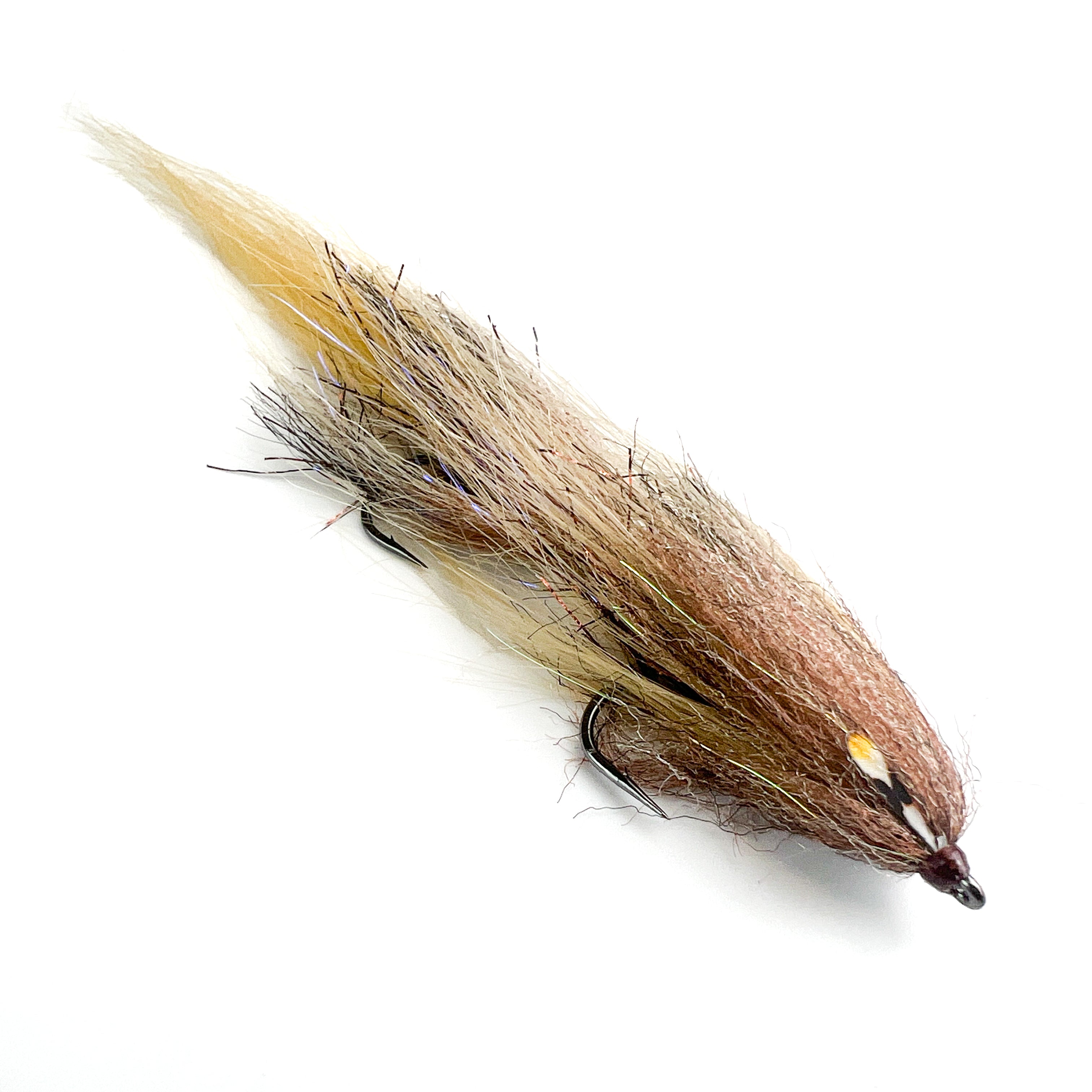 Dumpster dinner is a rather basic profiled articulated streamer entirely constructed out of synthetic fibers.  The footprint on this fly is rather suggestive, and is light as a feather but dances and undulates in the water like no other due to it's primary material being craft fur.  At a glance this fly gives the impression that it will turn into a noodle when wet, but a hidden flex resin spreader behind the synthetic head gives the fly enough bulk to dance and move water on  the strip.  One size fits all.  Color combos are in line with some bad food you might find while dumpster diving.  If you want the synthetic JC eyes on yours, leave a note in the comments section.