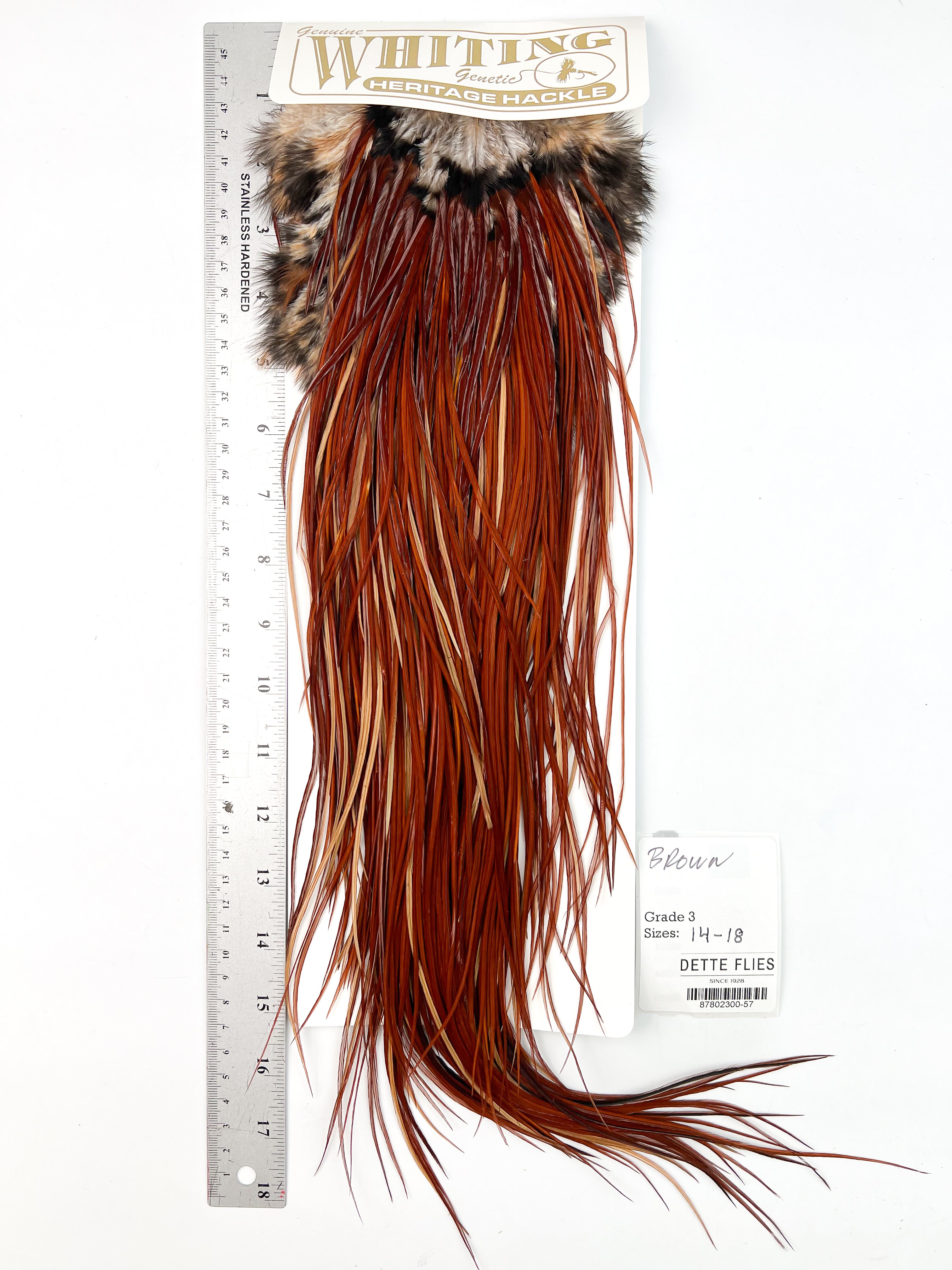 Brown - Whiting Heritage Hackle Rooster Saddle - Grade 3 (#57)