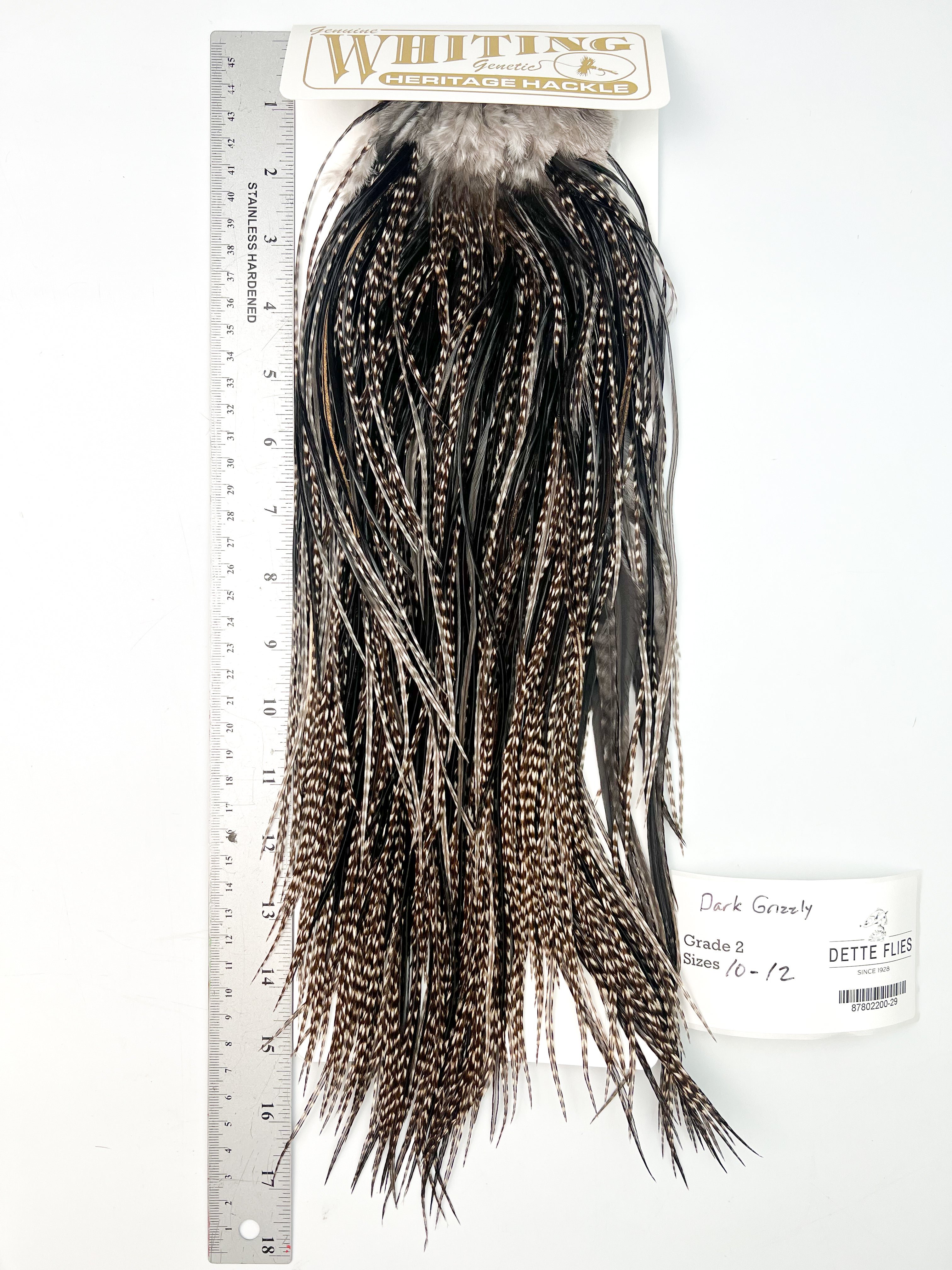 Dark Grizzly - Whiting Heritage Hackle Rooster Saddle - Grade 2 (#29)