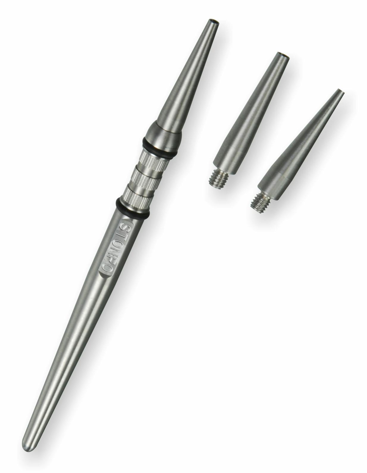 Extra user-friendly conical finisher. It is produced with stainless steel material by high precision machines. Supplied with three different heads of Ø 1,4 -2,0 -2,7 mm holes. Instructions included.
