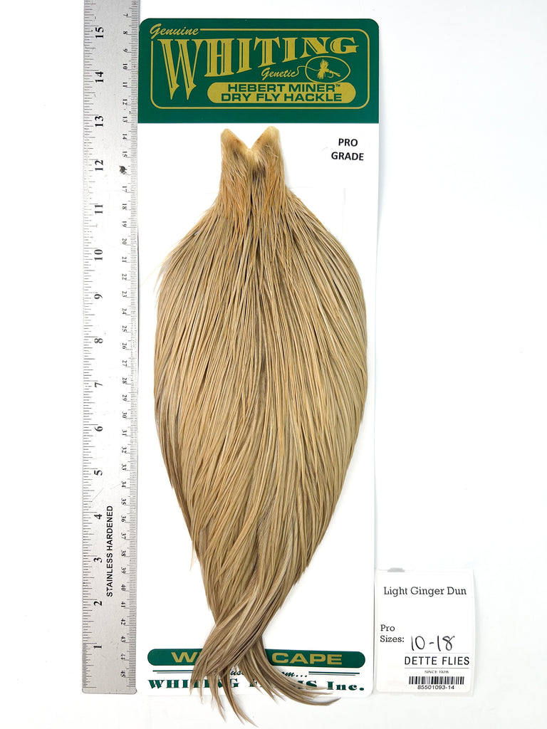 The Whiting Farms Hebert Miner hackle series is bar none for natural colors and quality feathers with great barb counts. Each cape is unique in its shade and variation, giving the tyer many options for a variety of flies from standard dry flies, emergers and cripples, to classic wet flies, soft hackles, and nymphs.