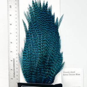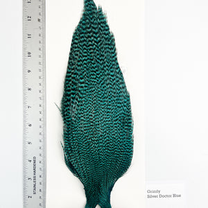 Grizzly dyed Silver Doctor Blue - Ewing Rooster Cape