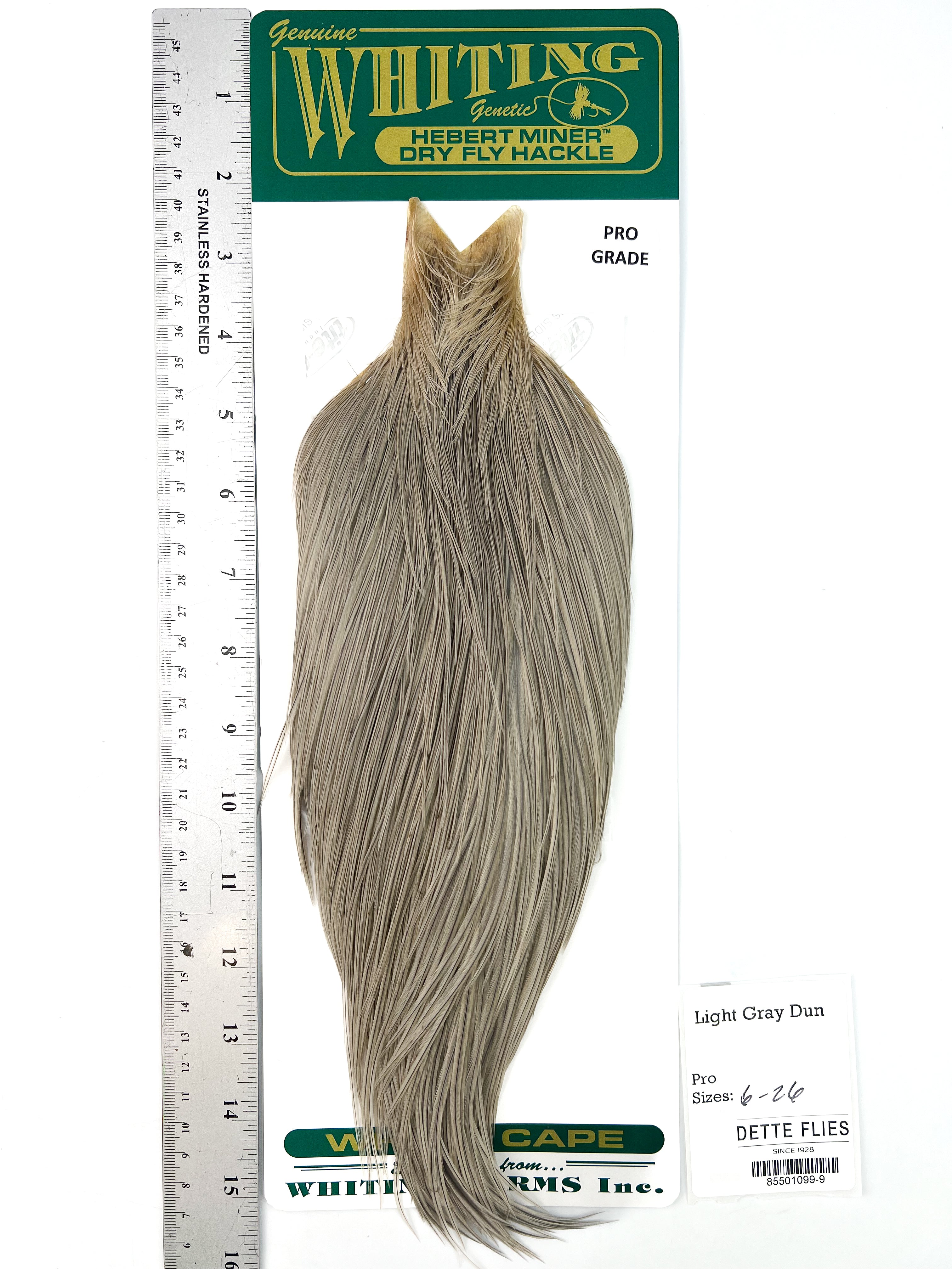 The Whiting Farms Hebert Miner hackle series is bar none for natural colors and quality feathers with great barb counts. Each cape is unique in its shade and variation, giving the tyer many options for a variety of flies from standard dry flies, emergers and cripples, to classic wet flies, soft hackles, and nymphs.