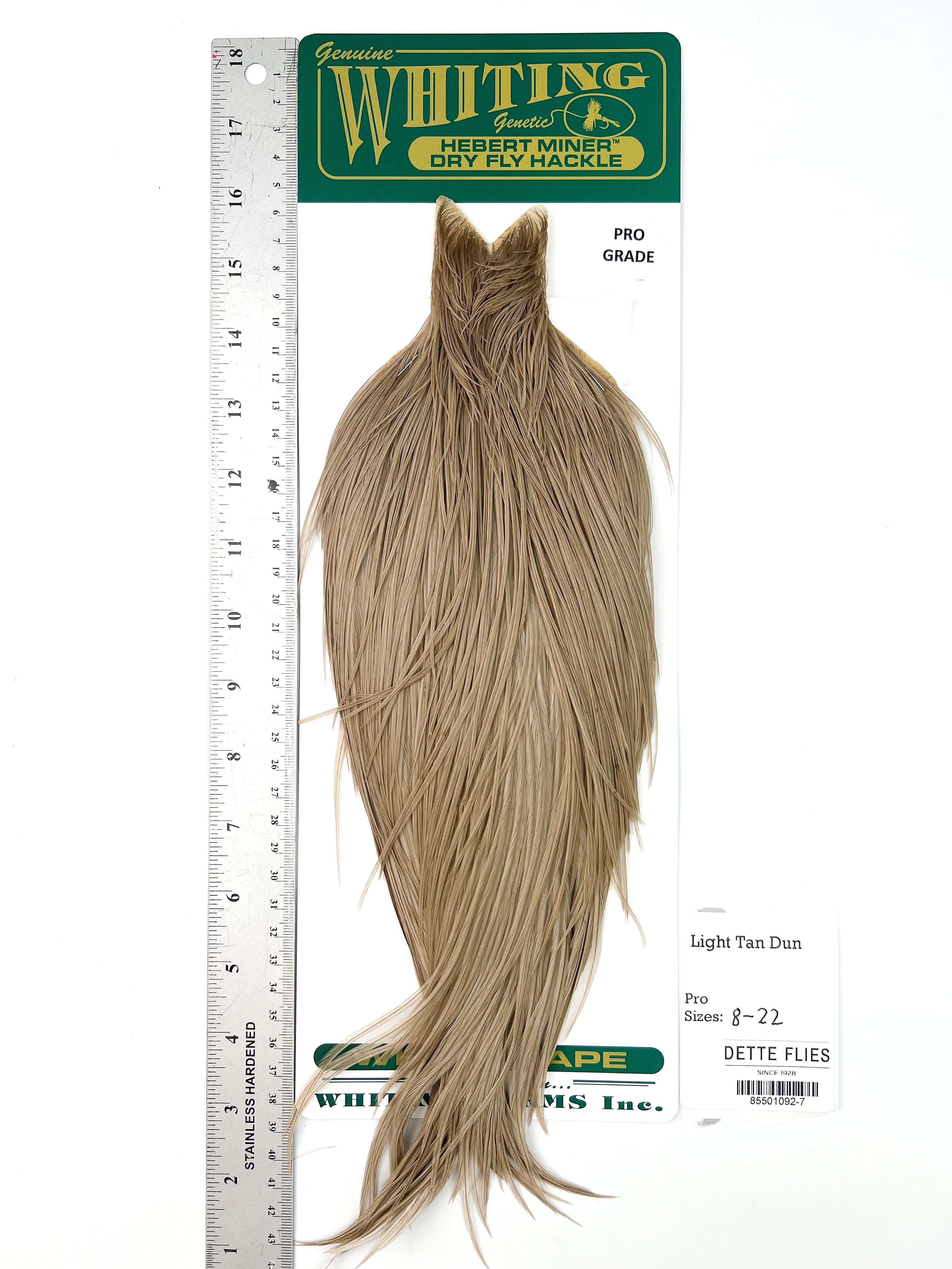 The Whiting Farms Hebert Miner hackle series is bar none for natural colors and quality feathers with great barb counts. Each cape is unique in its shade and variation, giving the tyer many options for a variety of flies from standard dry flies, emergers and cripples, to classic wet flies, soft hackles, and nymphs.