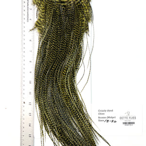 Grizzly dyed Olive - Whiting Midge Line Rooster Saddle - Bronze Grade