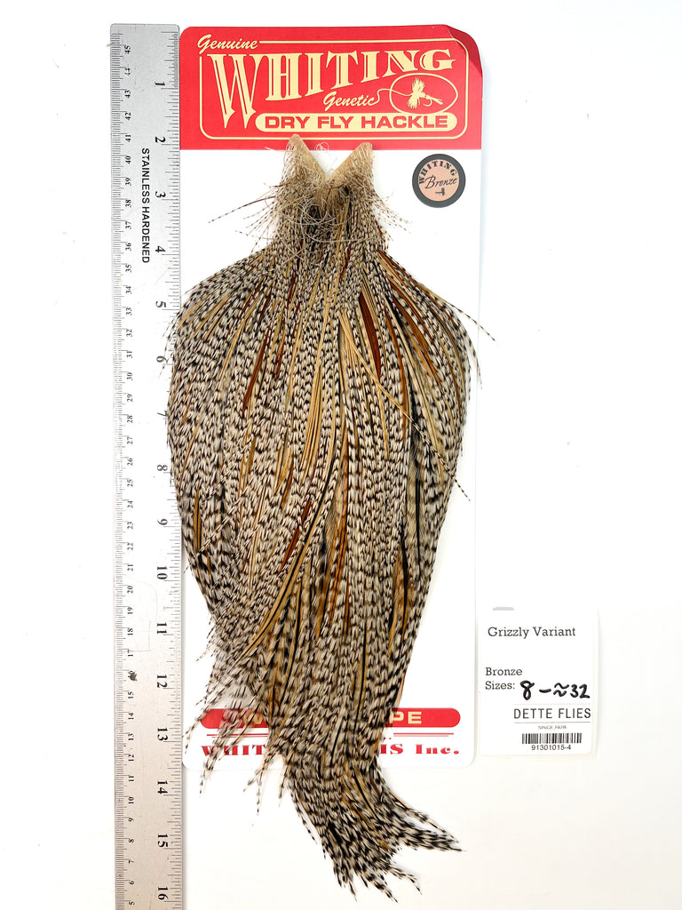 The ultimate dry fly cape or saddle! The Whiting line has the stiffest, most dense hackle for tying the best floating dry flies in the world. Each cape is unique in its shade and variation, giving the tyer many options.
