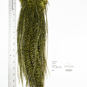Grizzly dyed Olive - Whiting Line Rooster Saddle - Bronze Grade