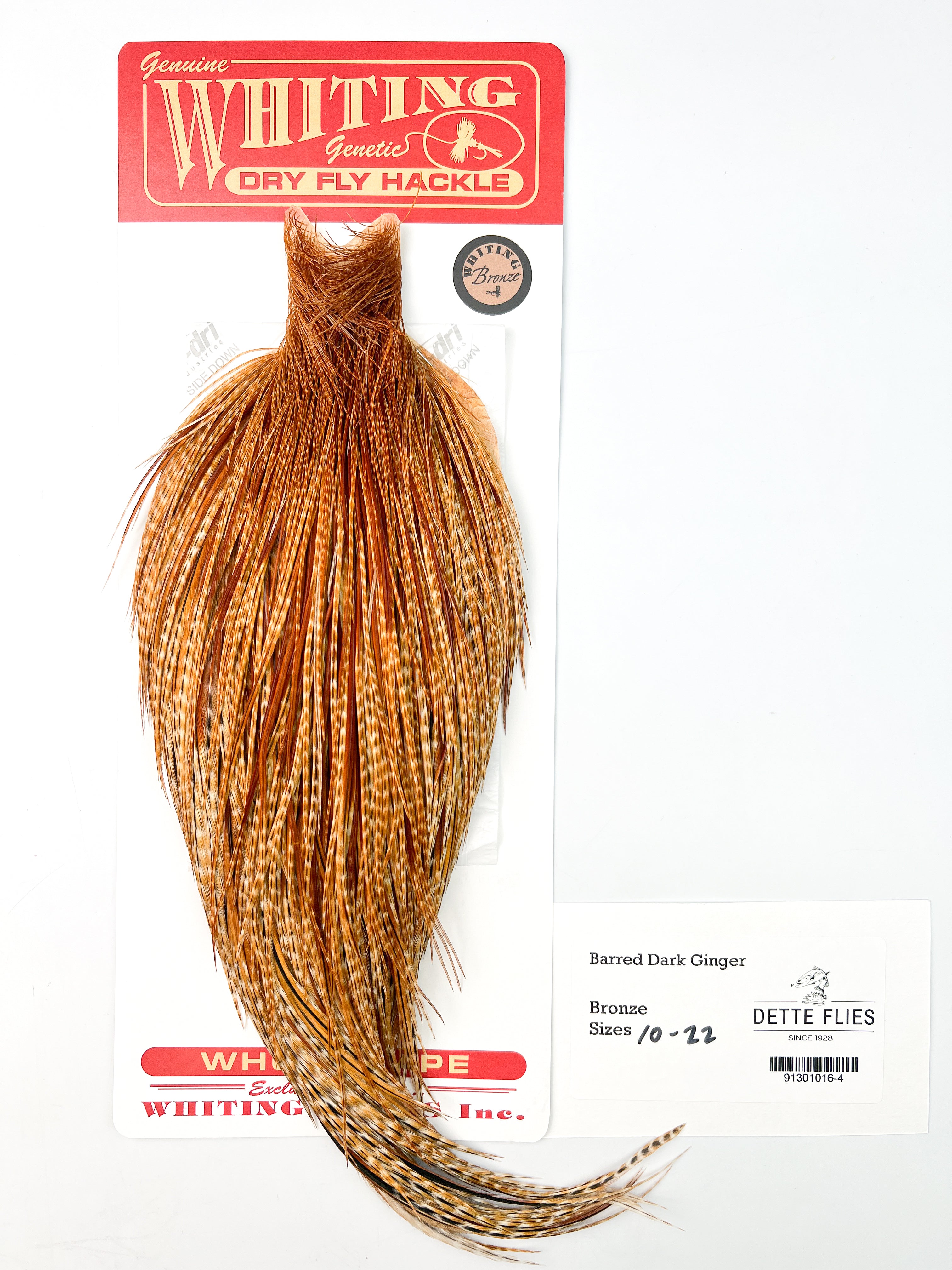 The ultimate dry fly cape or saddle! The Whiting line has the stiffest, most dense hackle for tying the best floating dry flies in the world. Each cape is unique in its shade and variation, giving the tyer many options.
