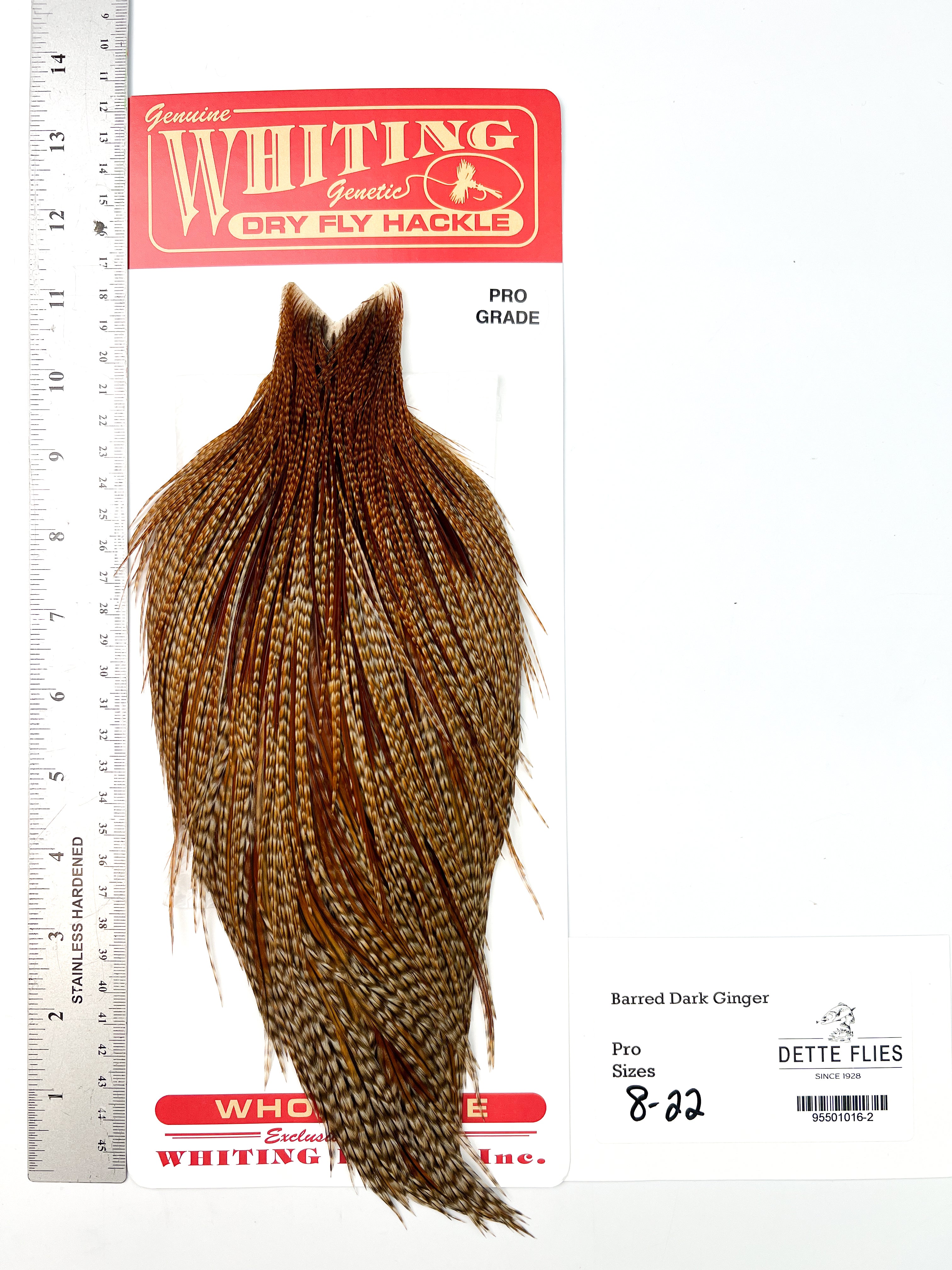 The ultimate dry fly cape or saddle! The Whiting line has the stiffest, most dense hackle for tying the best floating dry flies in the world. Each cape is unique in its shade and variation, giving the tyer many options.