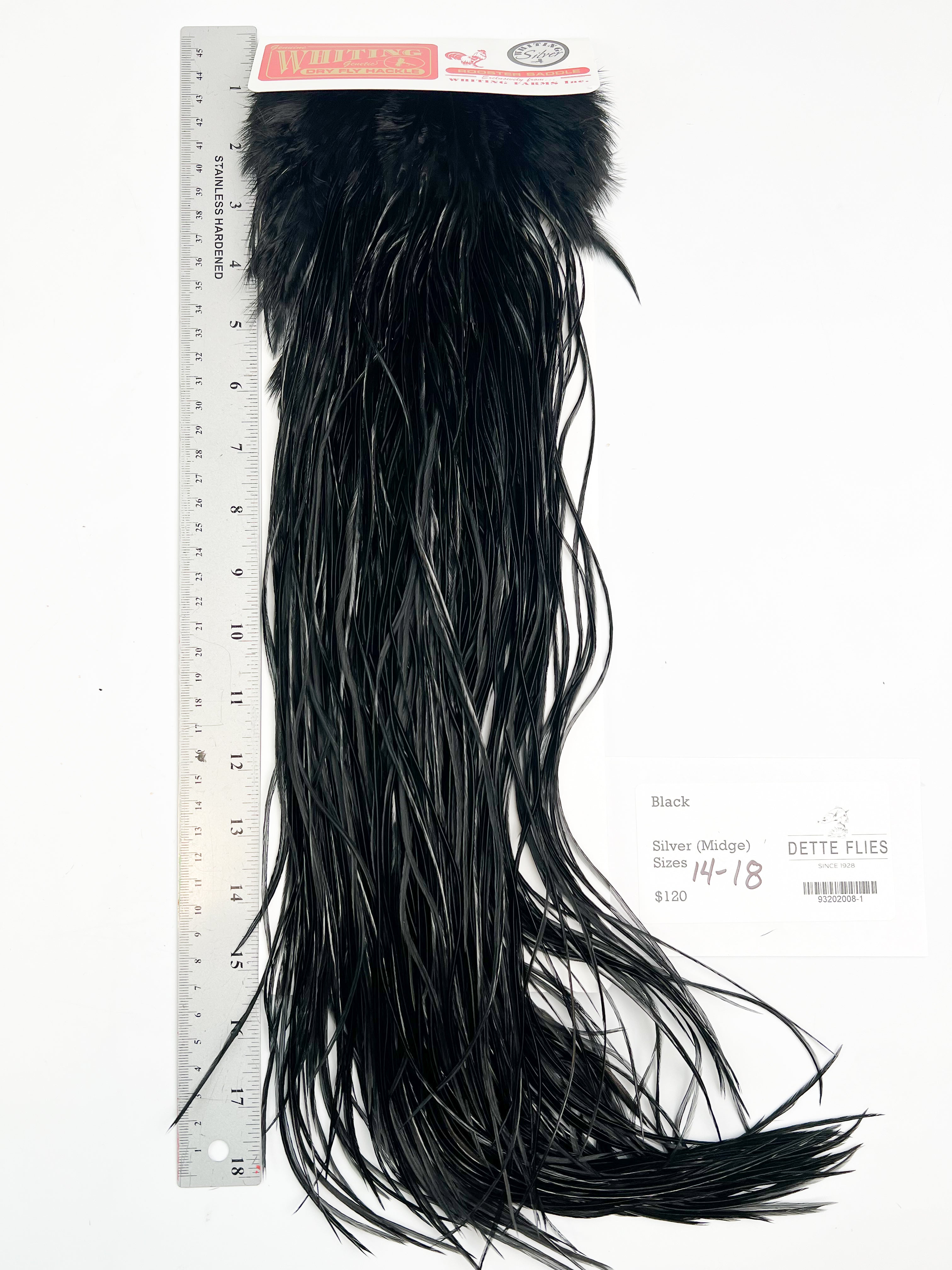 The ultimate dry fly cape or saddle! The Whiting line has the stiffest, most dense hackle for tying the best floating dry flies in the world. Each saddle is unique in its shade and variation, giving the tyer many options.