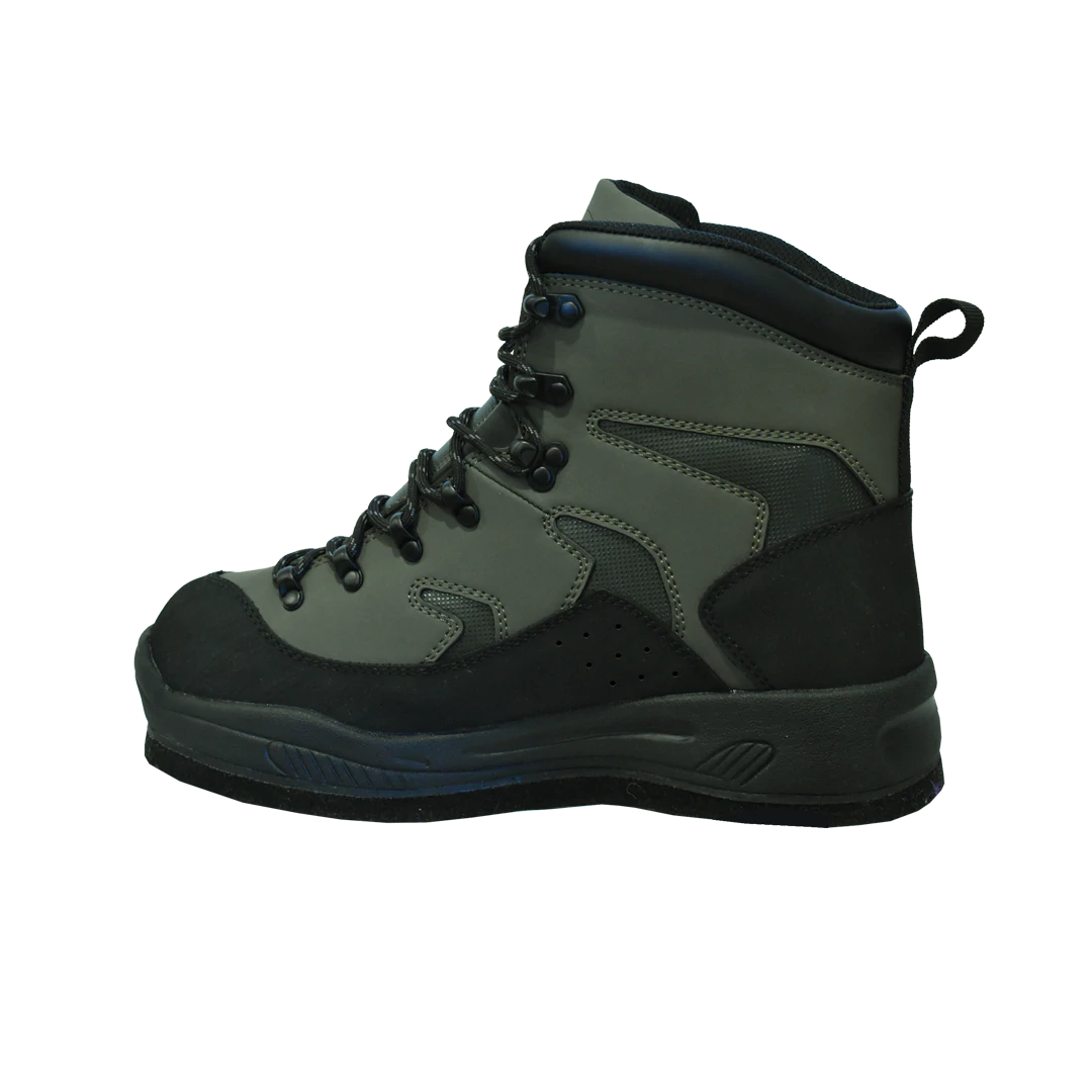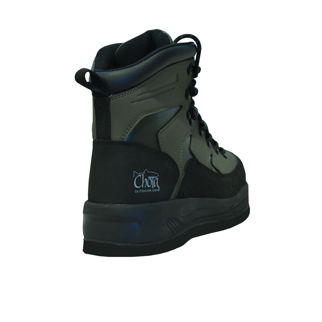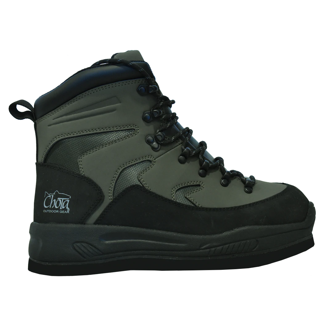 The Rough Ridge is designed for the harshest conditions The upper is a lightweight Rubber coated PU coupled with a hard rubber toe and heel rand make the rough ridge an incredibly durable boot that can take a beating. The synthetic inner lining and 3mm insole provides for a comfortable fit and does not soak up water helping to keep the boots light. Our EVA mid-sole provides all day comfort and durability for those long days on the water. This model Rough Ridge boot feature our durable high-density polypropylene felt soles that accepts all styles of our Chota cleats.