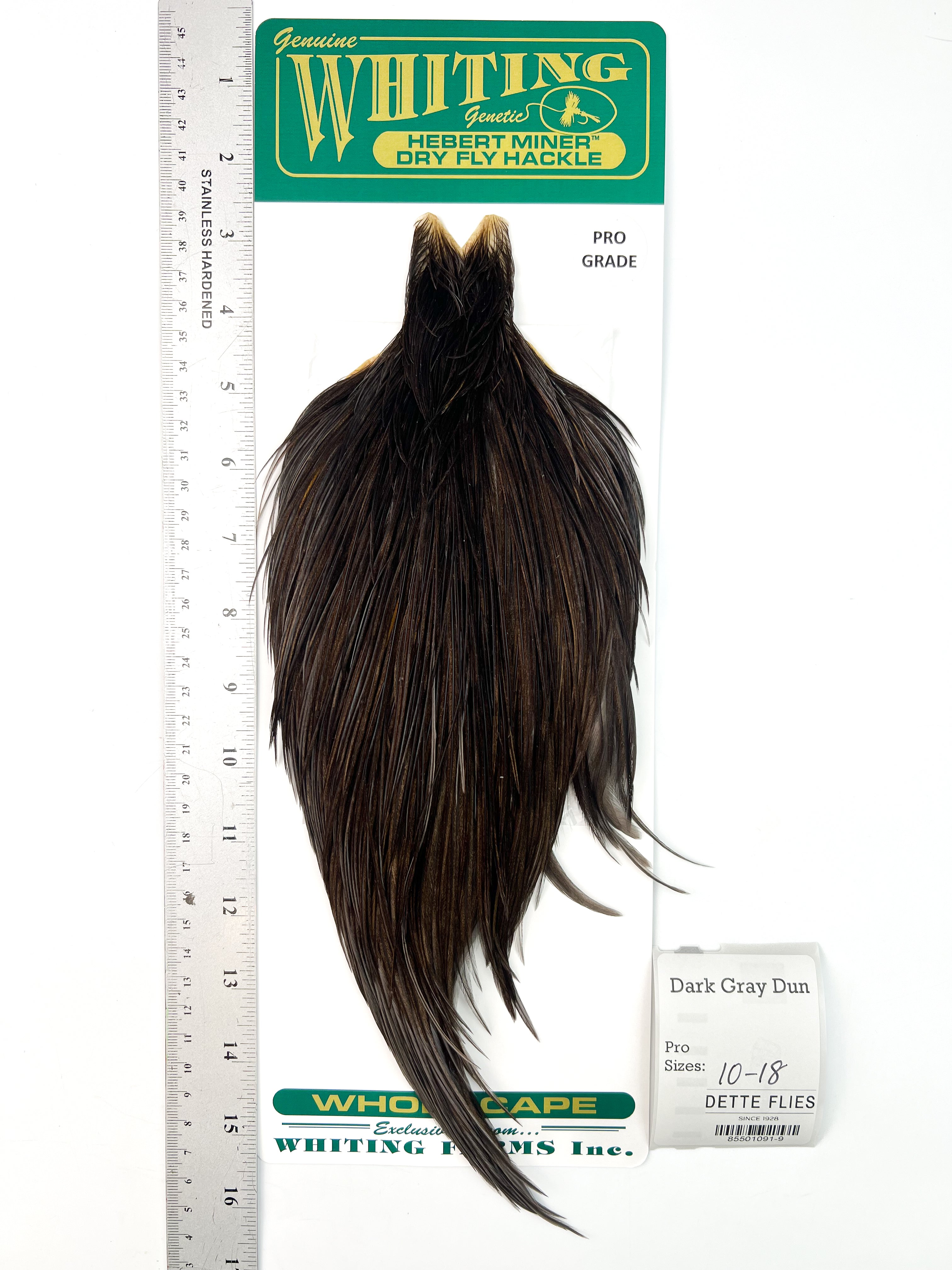 The Whiting Farms Hebert Miner hackle series is bar none for natural colors and quality feathers with great barb counts. Each cape is unique in its shade and variation, giving the tyer many options for a variety of flies from standard dry flies, emergers and cripples, to classic wet flies, soft hackles, and nymphs.
