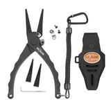 Designed with HR 70+ anvil tungsten carbide side cutters, these T.C. cutters make short work of any monofilament and excel at cutting the new-age braid and synthetic lines, and can handle wire up to 60lbs. Jaws are made from heat treated SUS420 J2 coated stainless steel with a HR of 52. Frame is made from 6061-T6 anodized aluminum to withstand salt water, and is equipped with non-slip rubber grips and a self-opening spring. The most versatile plier in our arsenal.