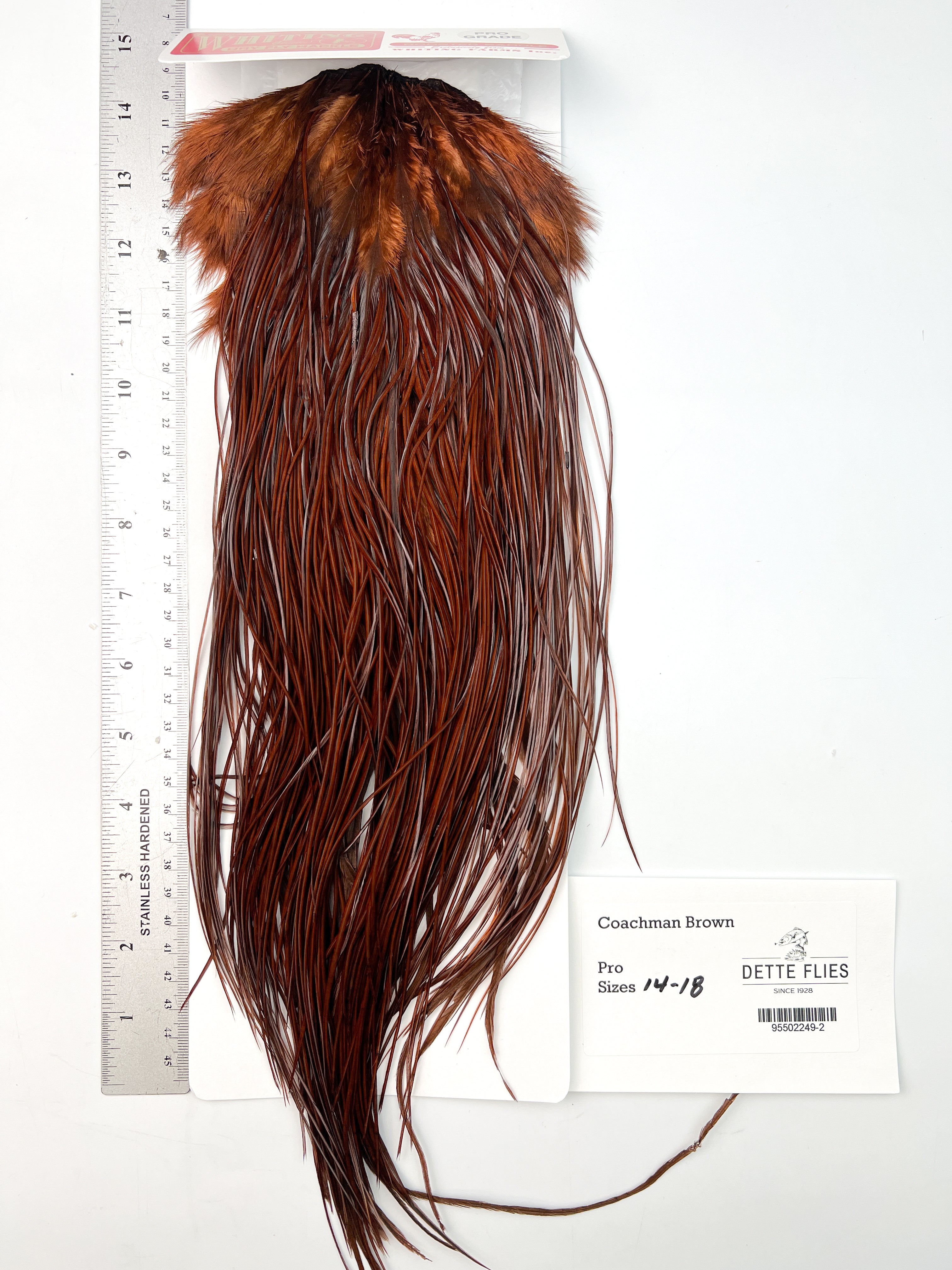 The ultimate dry fly cape or saddle! The Whiting line has the stiffest, most dense hackle for tying the best floating dry flies in the world. Each saddle is unique in its shade and variation, giving the tyer many options.