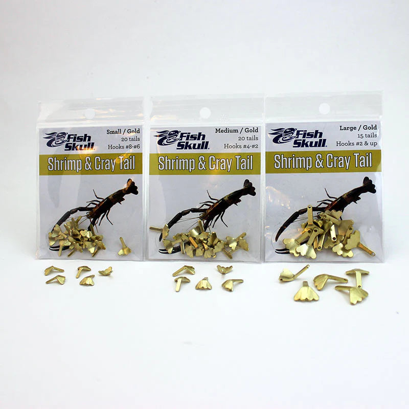 Quick and easy to tie, the Shrimp & Cray Tail™ is a simple alternative to bead chain eyes and dumbbells – two general-purpose fly tying materials which add the needed weight to shrimp and crayfish flies, but require ungainly tying methods and lack the distinctive tail profile of these creatures.