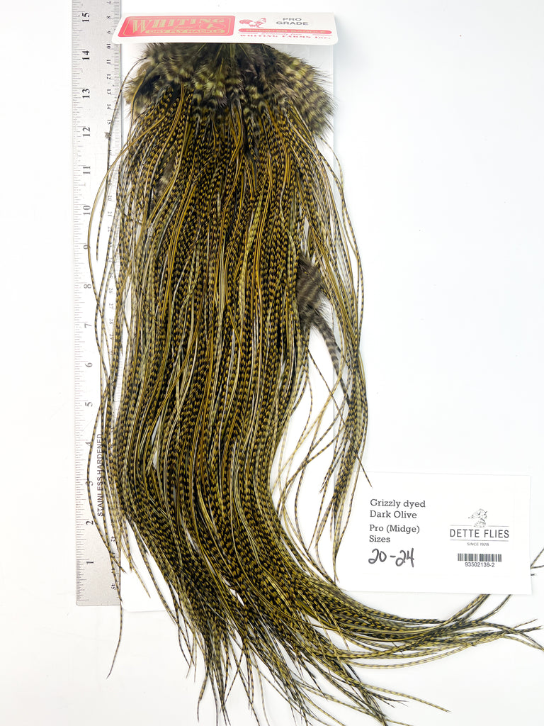 Grizzly dyed Dark Olive - Whiting Midge Rooster Saddle - Pro Grade