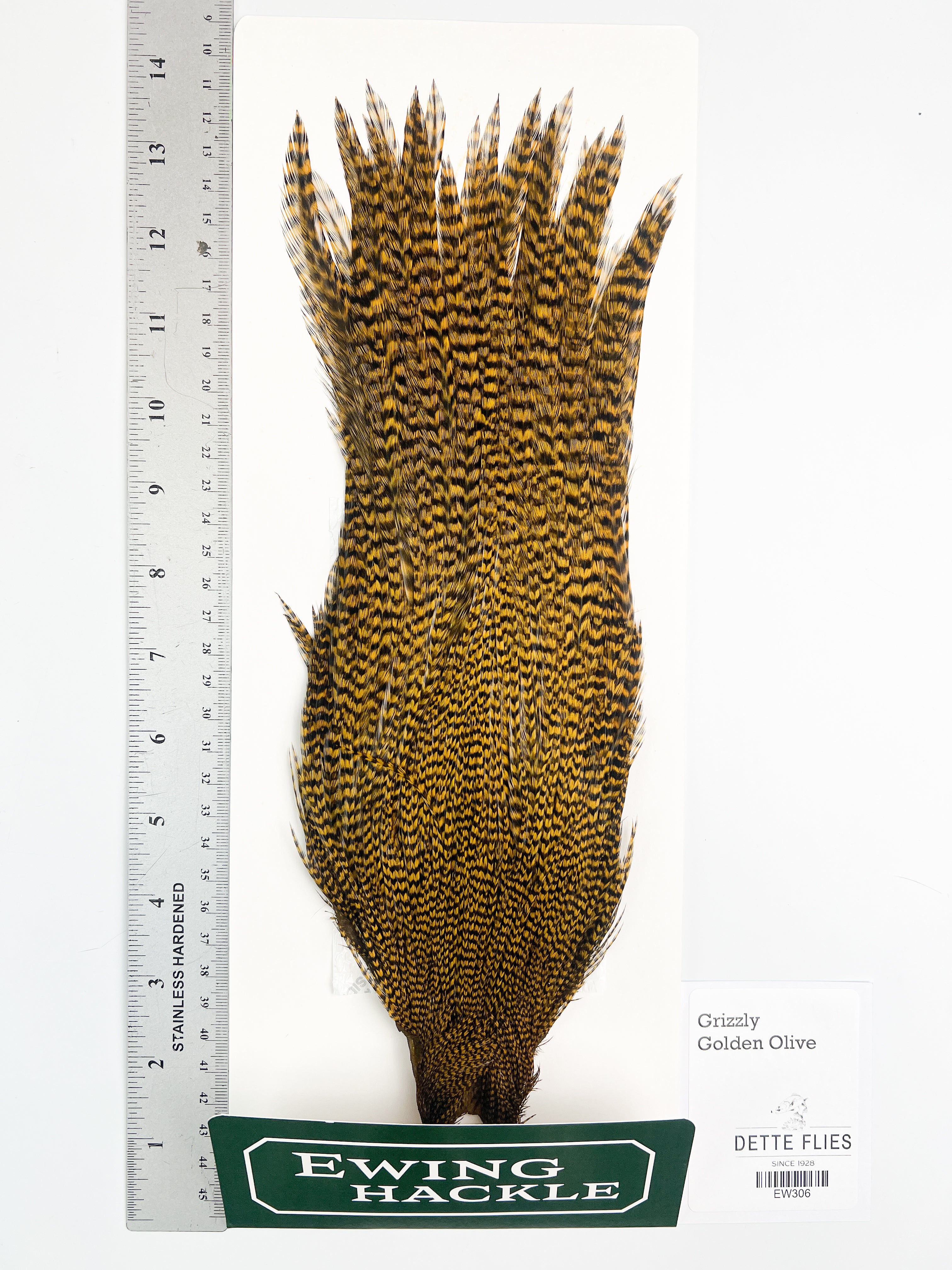 Grizzly dyed Golden Olive - Ewing Rooster Cape