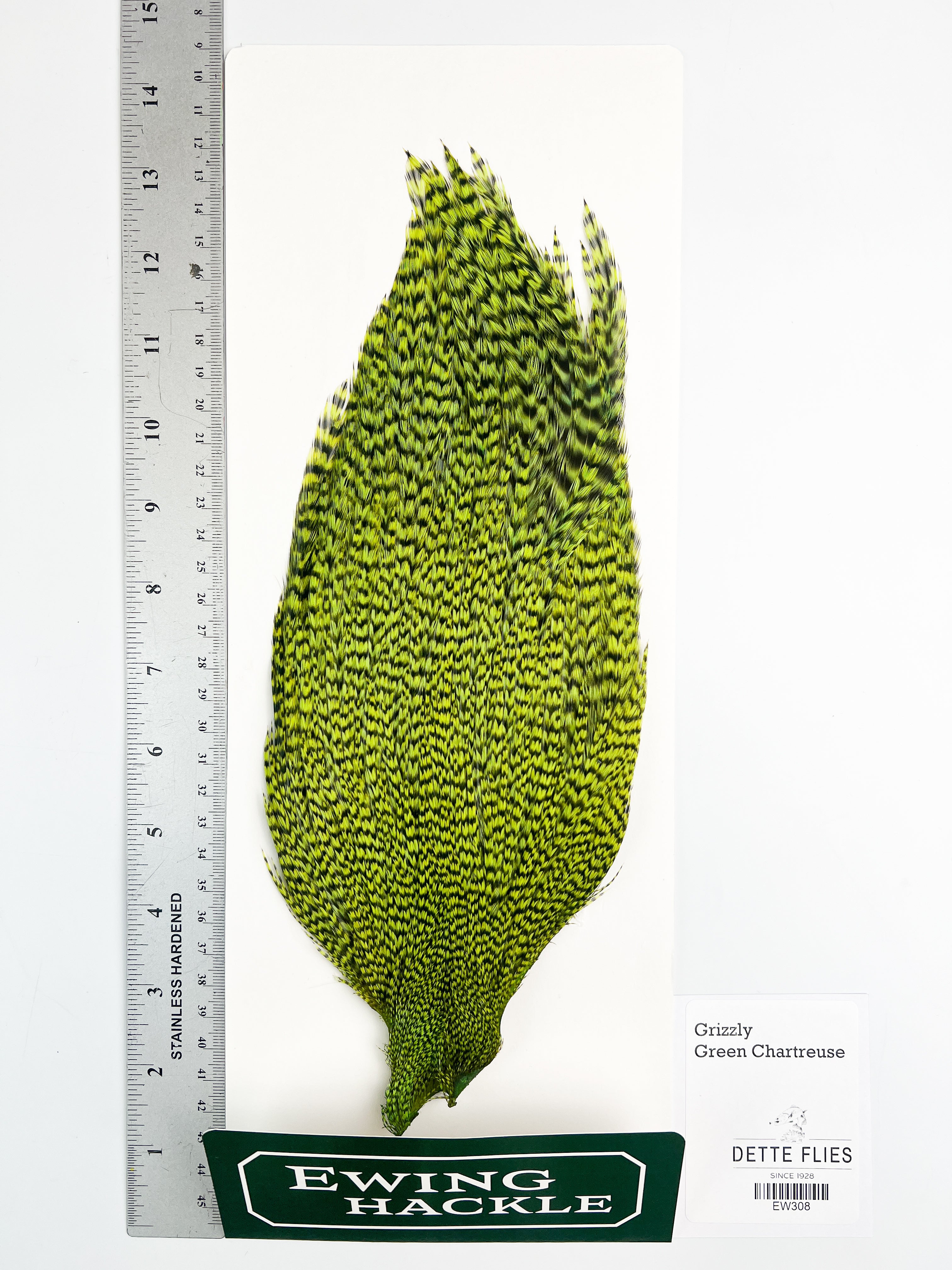 Grizzly dyed Green Chartreuse - Ewing Rooster Cape