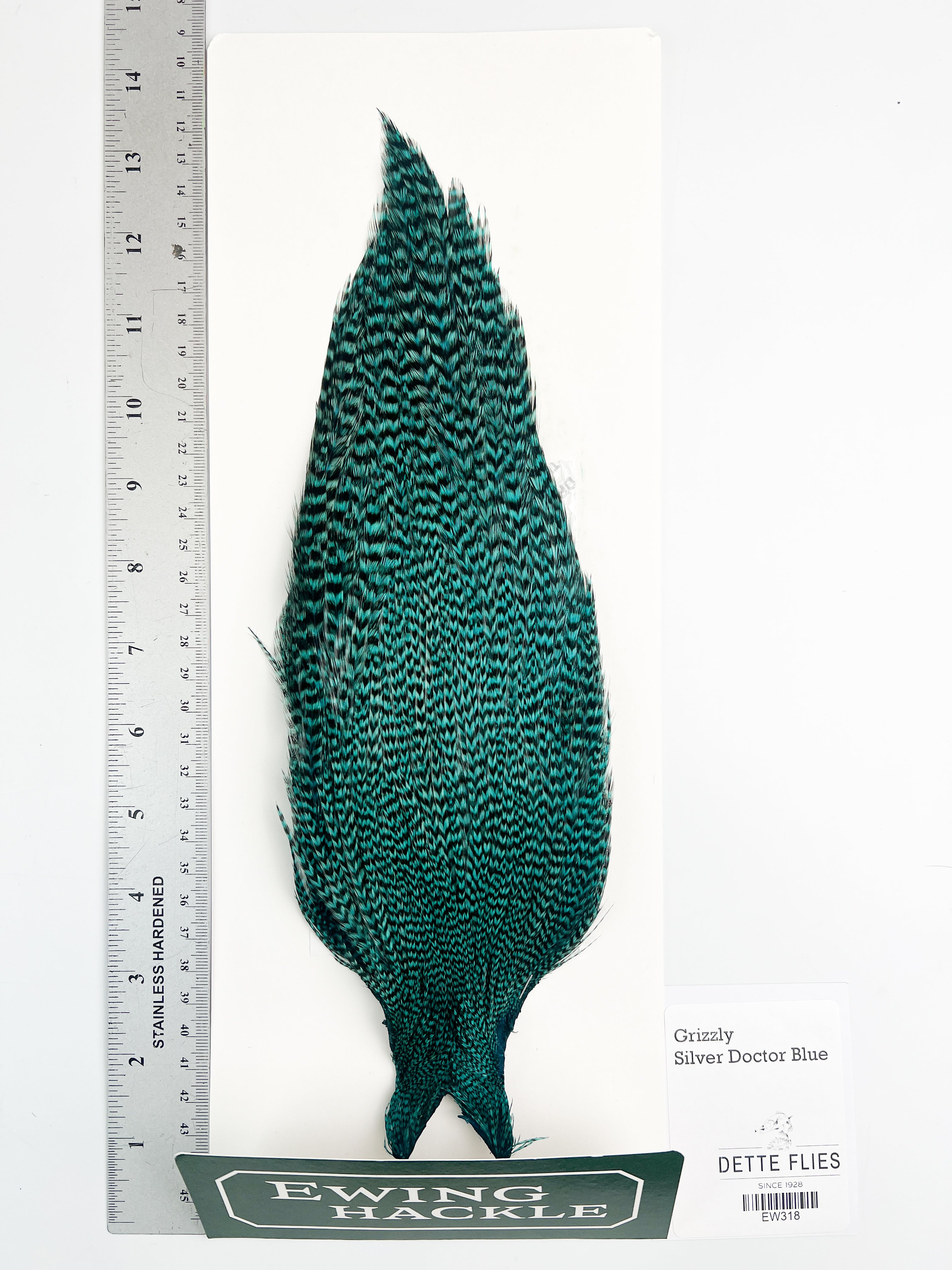 Grizzly dyed Silver Doctor Blue - Ewing Rooster Cape