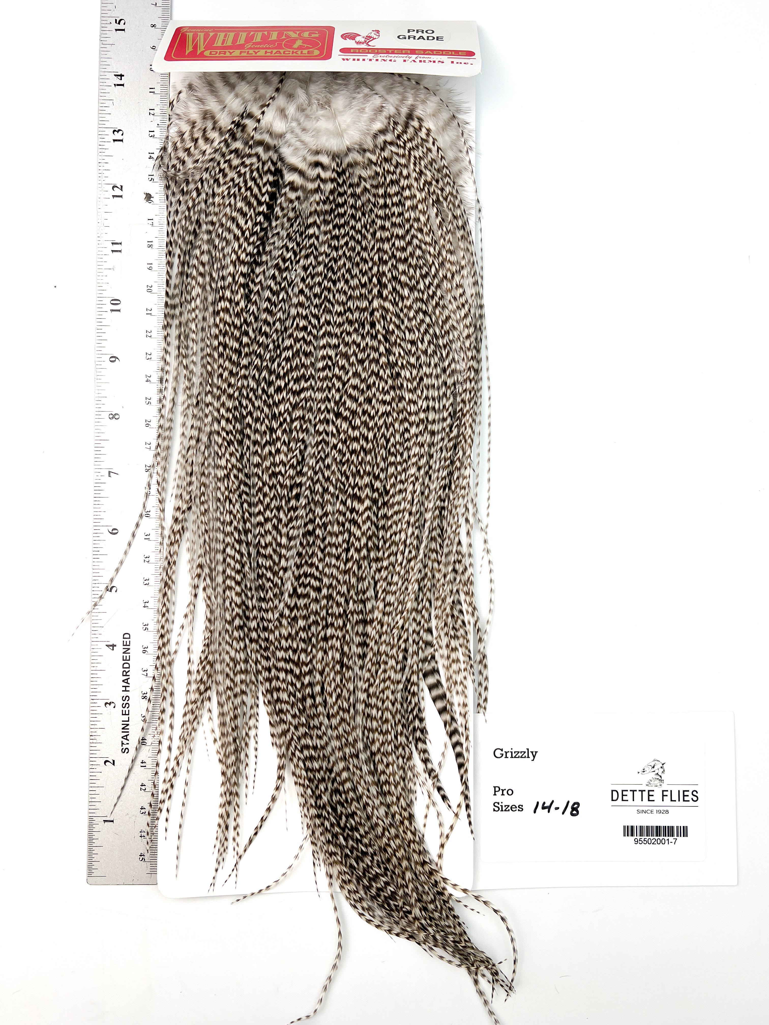 The ultimate dry fly cape or saddle! The Whiting line has the stiffest, most dense hackle for tying the best floating dry flies in the world. Each saddle is unique in its shade and variation, giving the tyer many options.