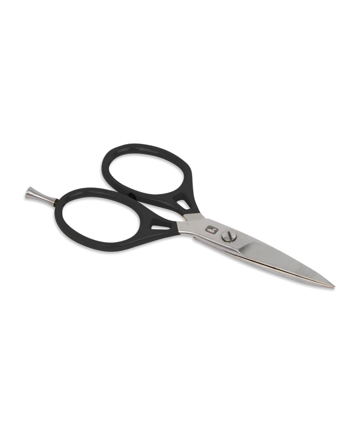 The broad blades offer a stouter feel and increased stability, regardless of what you're cutting. The oversized handles are ergonomically designed to accommodate tyers with extra large fingers, and include a removable Precision Peg for unmatched control. These are an excellent pair of scissors for working with big materials and tying big flies, and the blades are honed to perfection right here in the USA.