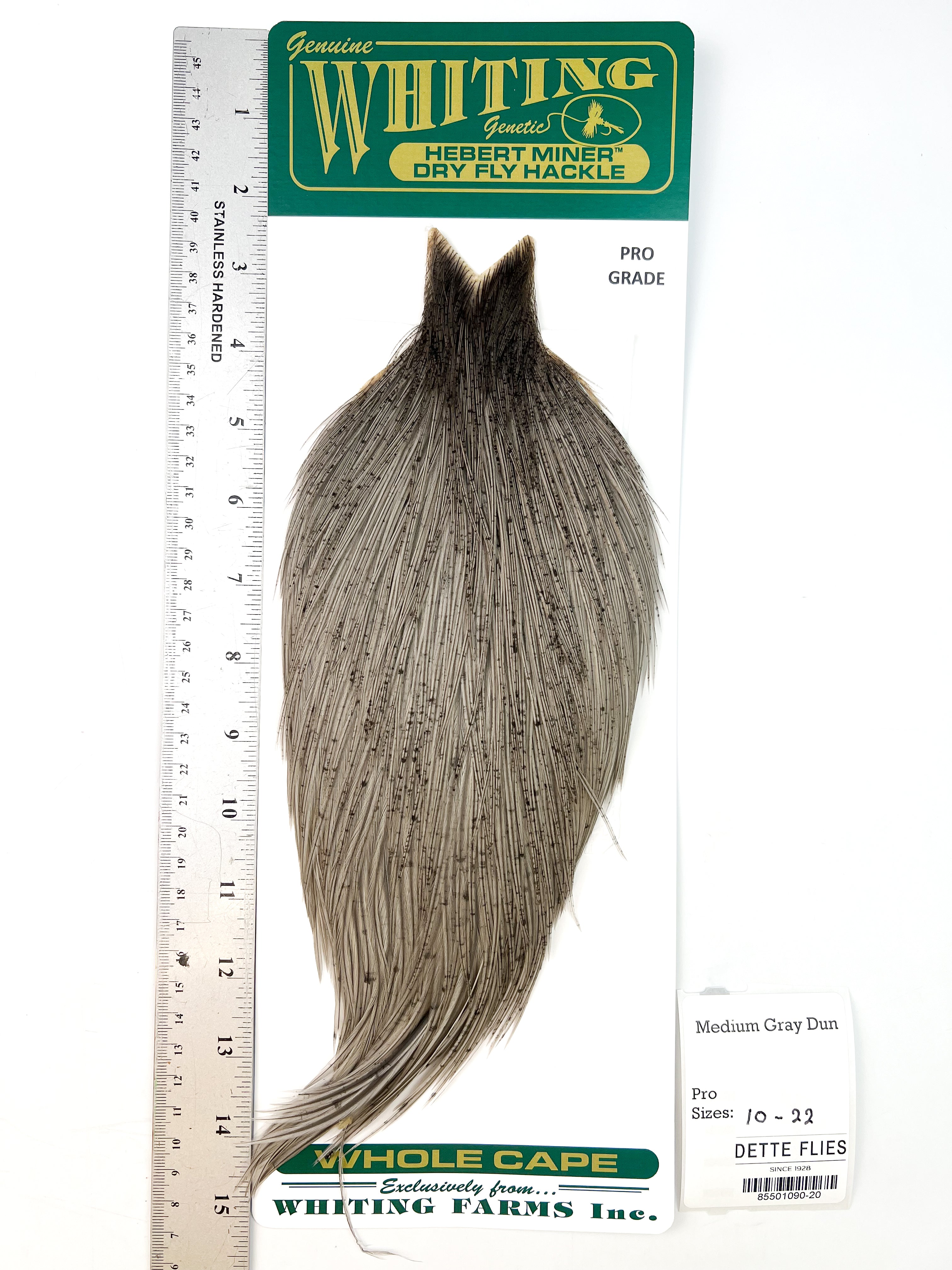 The Whiting Farms Hebert Miner hackle series is bar none for natural colors and quality feathers with great barb counts. Each cape is unique in its shade and variation, giving the tyer many options for a variety of flies from standard dry flies, emergers and cripples, to classic wet flies, soft hackles, and nymphs.