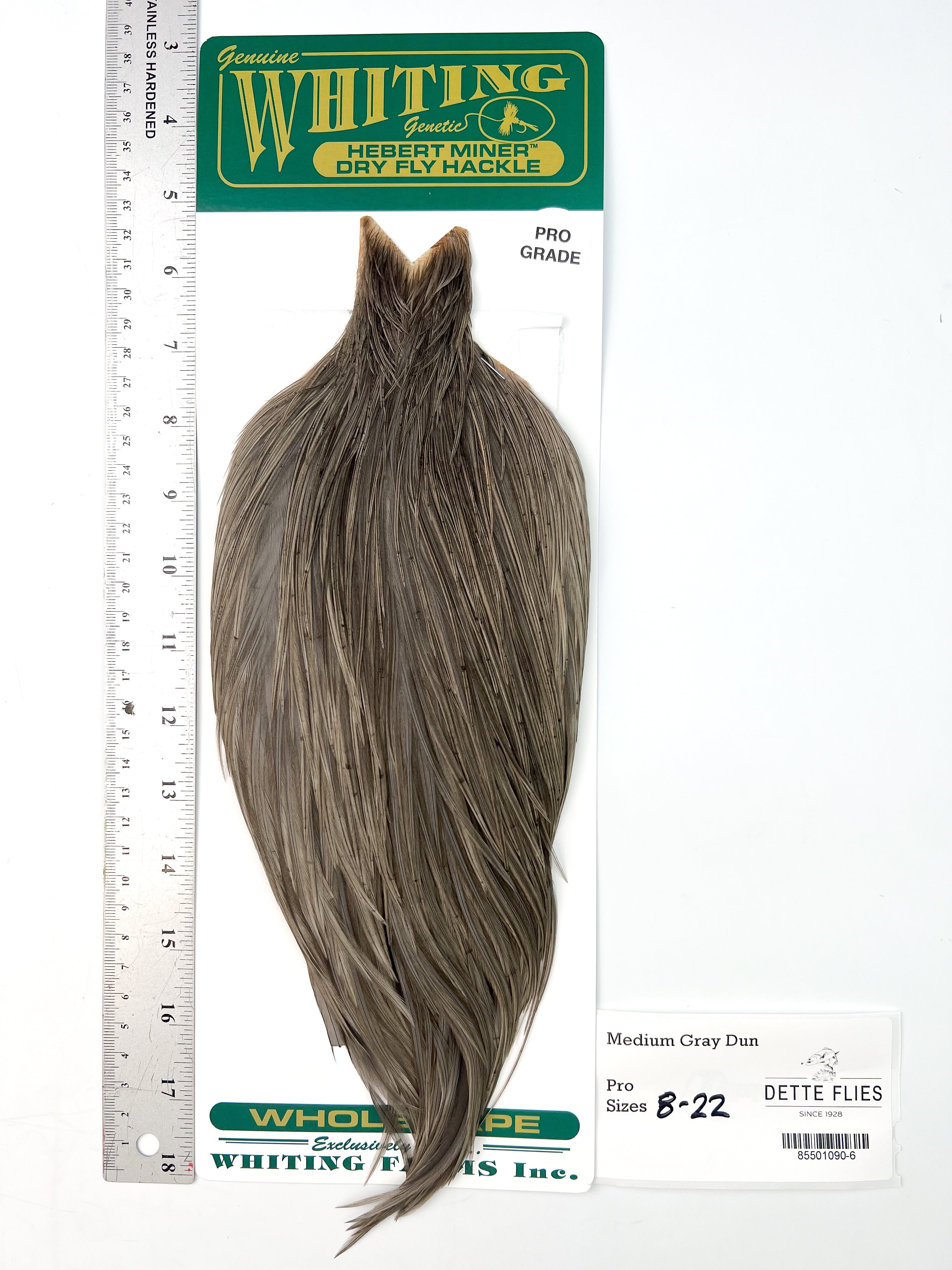 The Whiting Farms Hebert Miner hackle series is bar none for natural colors and quality feathers with great barb counts. Each cape is unique in its shade and variation, giving the tyer many options for a variety of flies from standard dry flies, emergers and cripples, to classic wet flies, soft hackles, and nymphs.