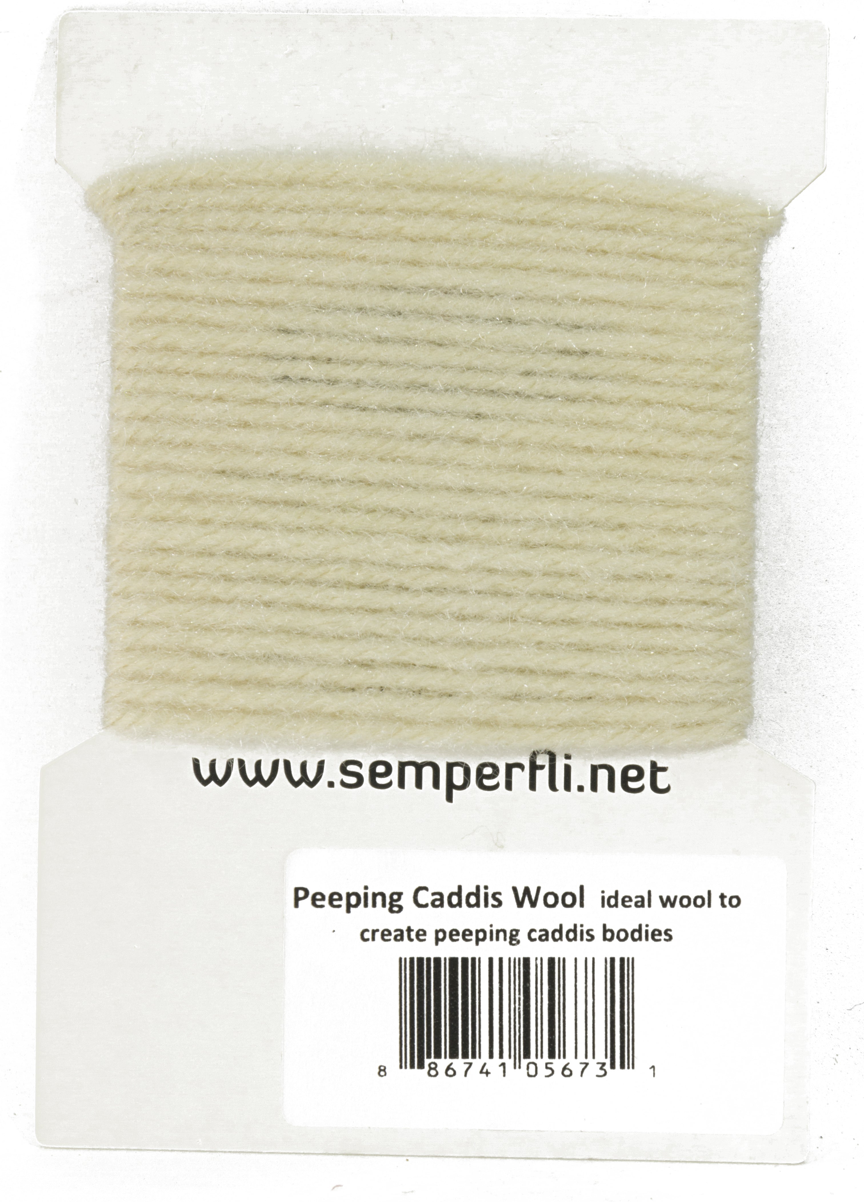 Peeping Caddis wool is just that, a wool which creates caddis bodies. It will can make lots of caddis bodies. Burn the end and it looks just like a caddis used for Hans Van Klinken Peeping Caddis Pattern.