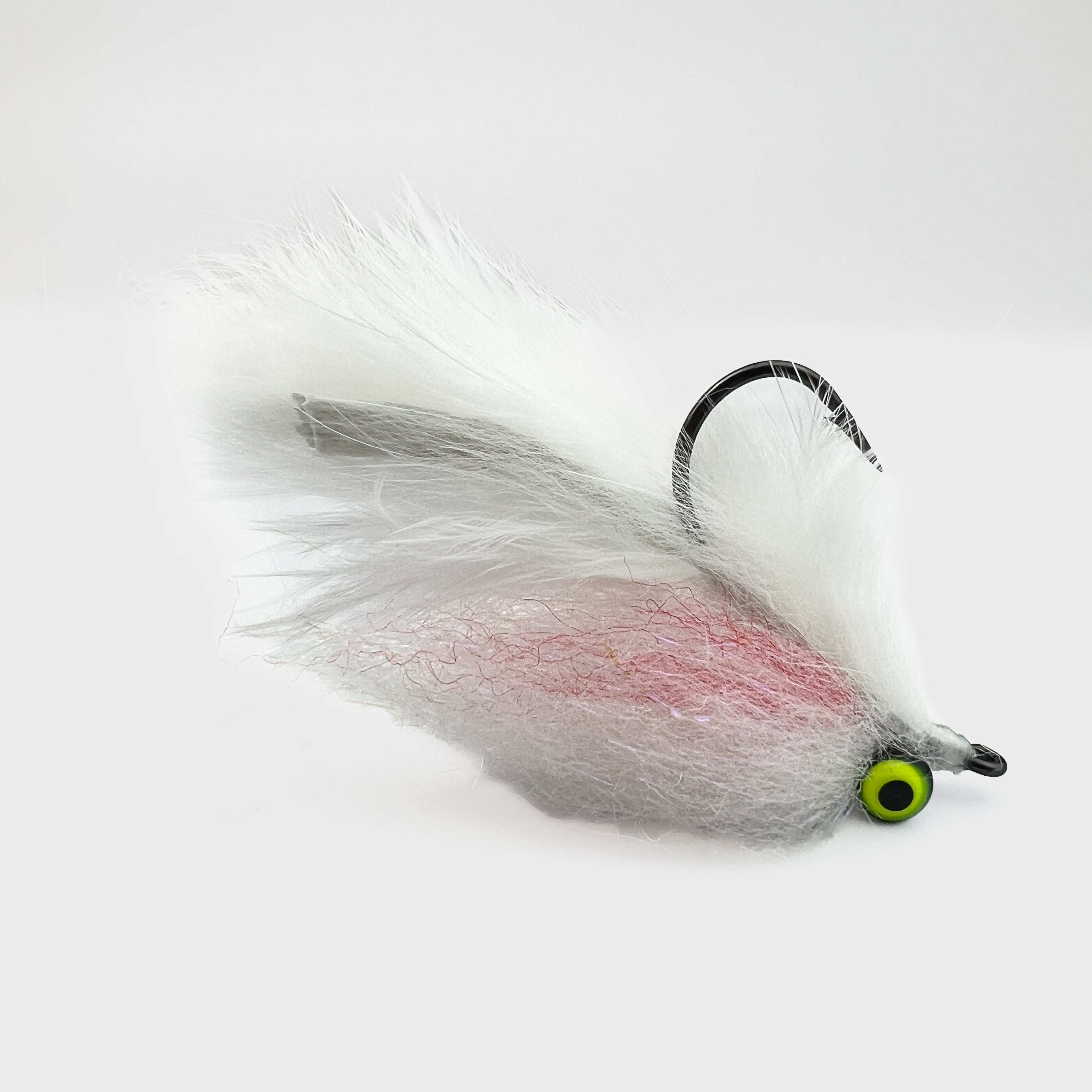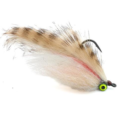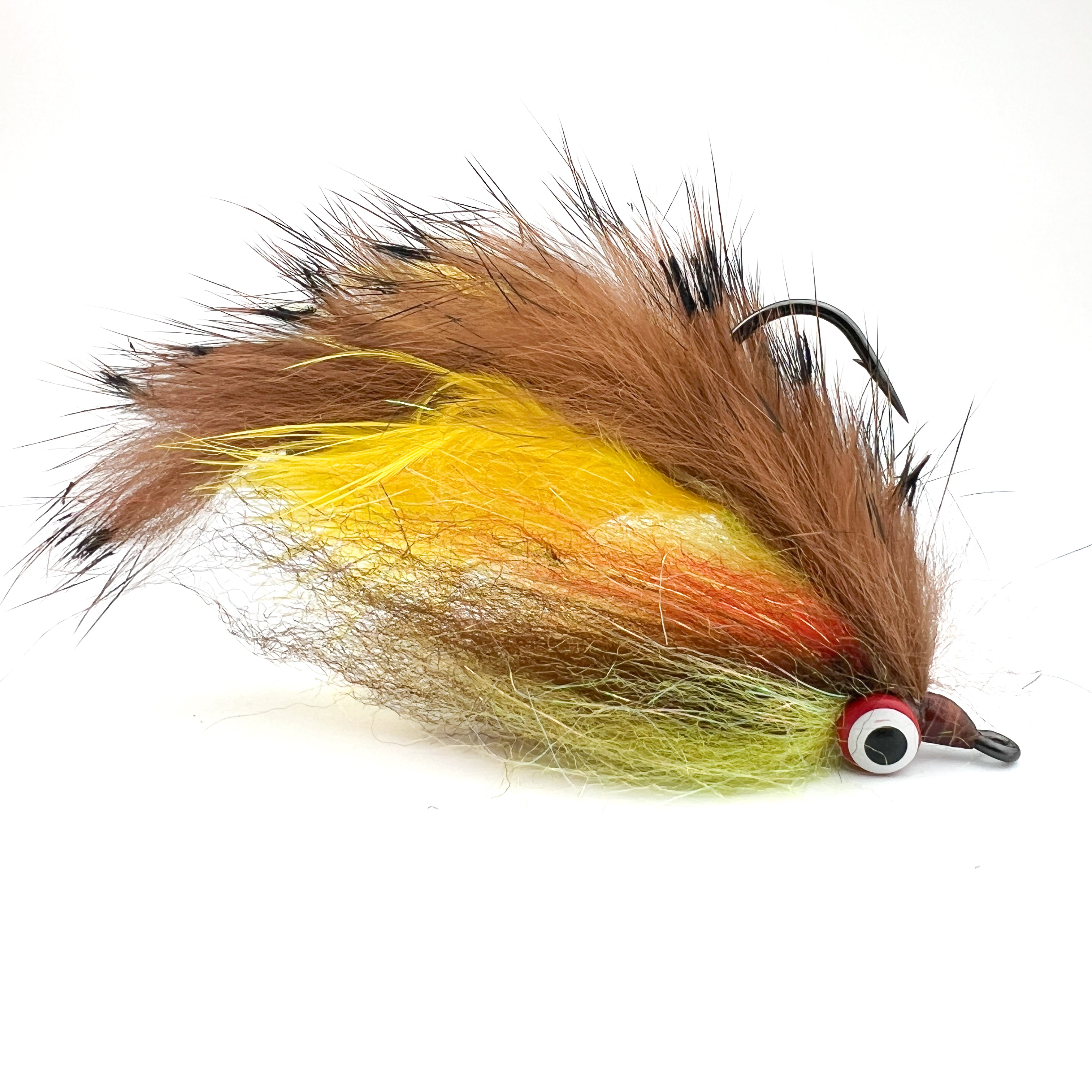 Bottom Bouncing jig type streamer. This was the precursor to the headbanger when it comes to lower water column streamers. Great for trout, even better for smallmouth bass. A 2.5 inch streamer on a jig hook.