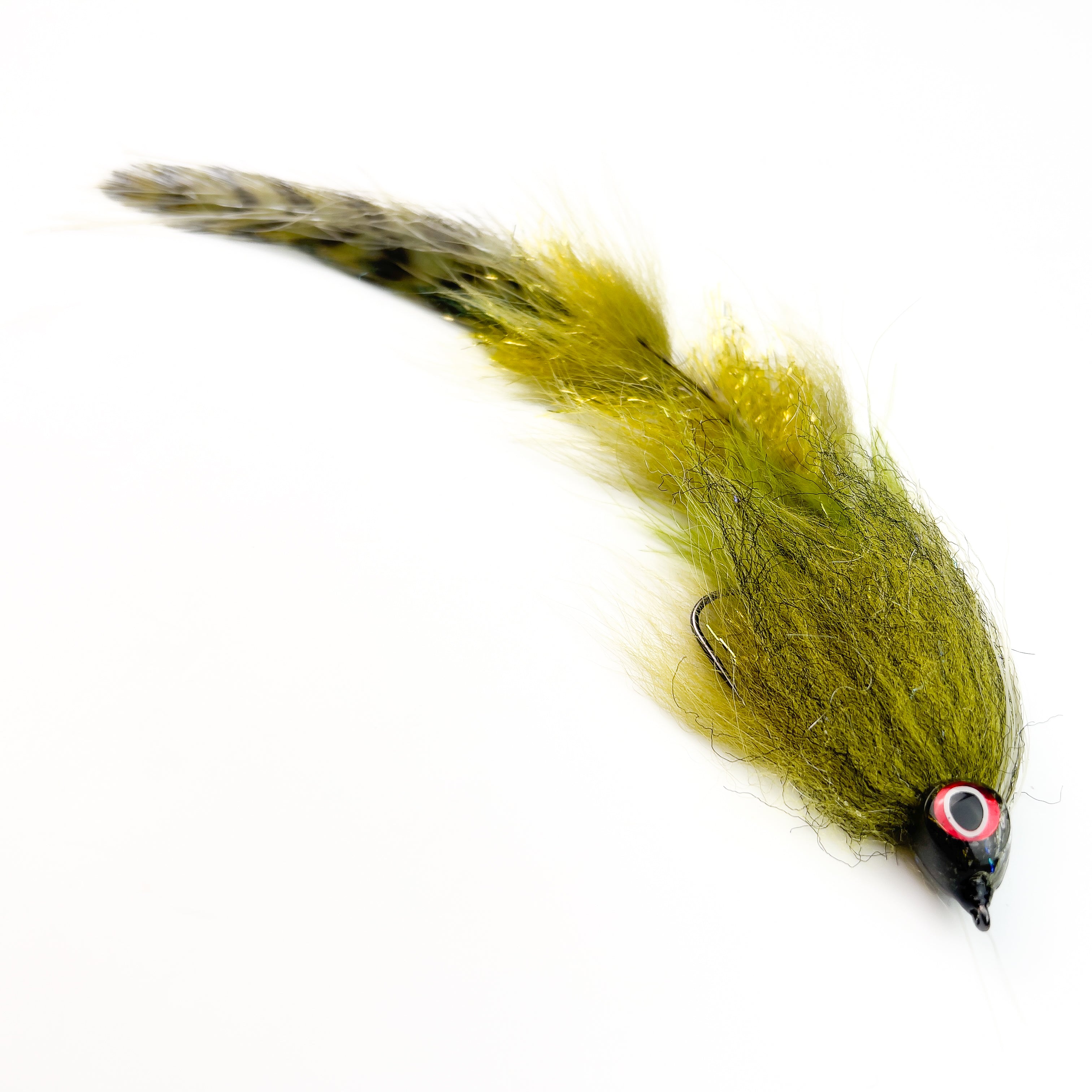 The predator size Masked Avenger pattern; 3 sections, one predator hook or stouter hook depending on the target species. These fun flies have accounted for many species including pike, muskie, striped bass, bluefish, tigerfish and dorado
