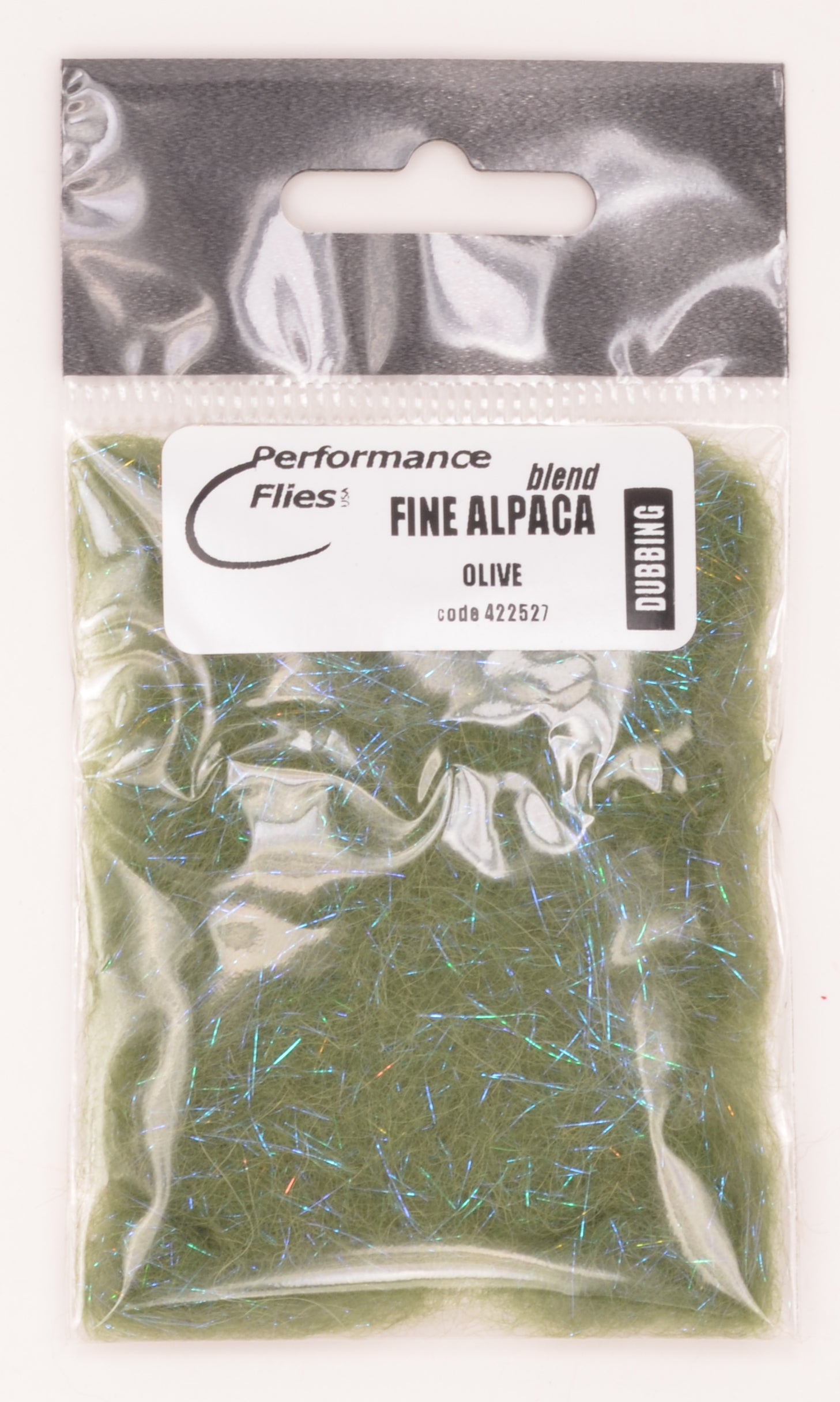 Alpaca blend is a mixture long superfine stranded and UV flash fibers dubbing and very easy to work with. Mix it with a little cdc floatant to get superb floating flies because many strands are hollow. Use for body, winging as a replacement for hares ear or bucktail.