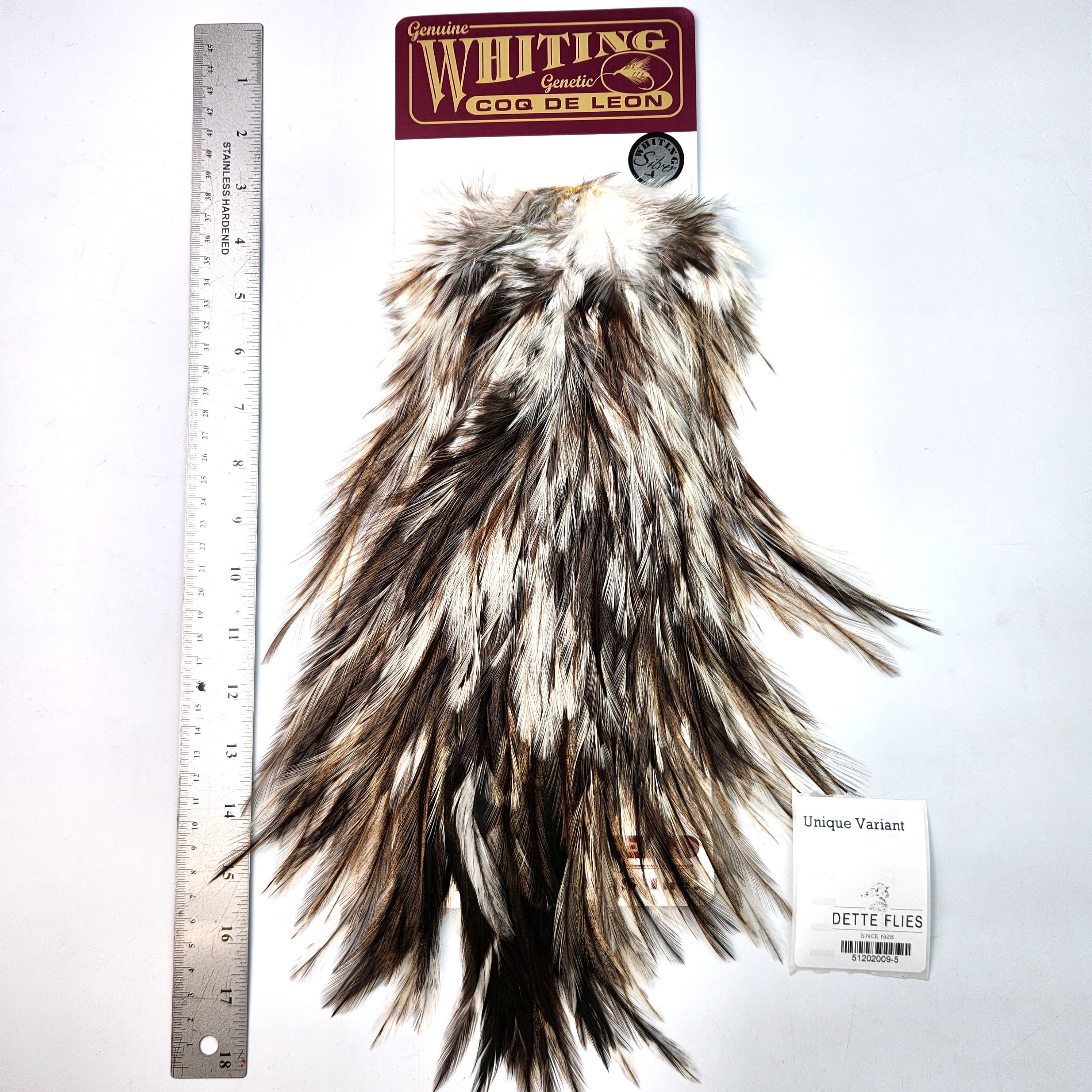 Whiting Coq de Leon line of hackle is prized for the long glossy barbs. It is widely used for tailing of both dry flies and nymph. It also is fantastic for hackle collars and winging.