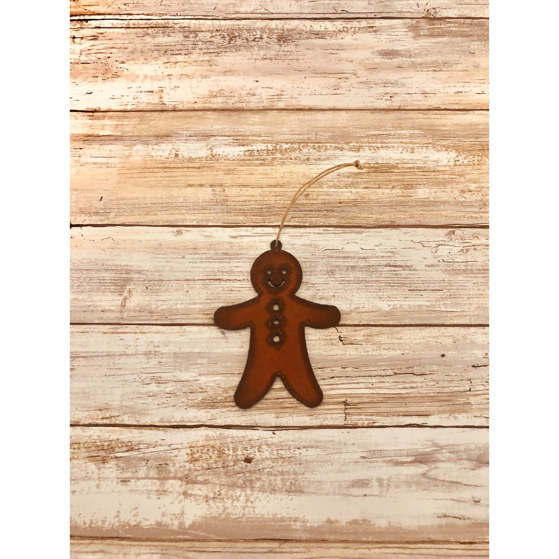 Gingerbread ornament. This Ornament is made with 18 Gauge Steel. Due to the Natural Rusting Process color may vary slightly, Made In Prescott Arizona