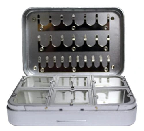 1307 - Small 7's and 10's clips in lid for 24 files and 6 window compartments in base.3 1/2" x 2 3/4" x 1"