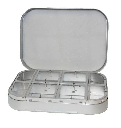 1408F - Flat foam in lid. 4 large and 4 small window compartments in base. 4 3/4" x 3 1/2" x 1 1/8"